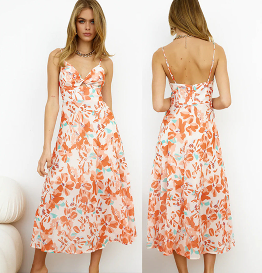 Oplev det perfekte sommerlook med vores damers A-linje maxikjole, der imponerer med det forførende U-udskæringsdesign og det betagende blomsterprint. Denne kjole kombinerer elegance med komfort og er ideel til forskellige anledninger.