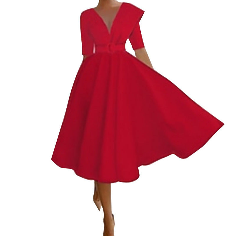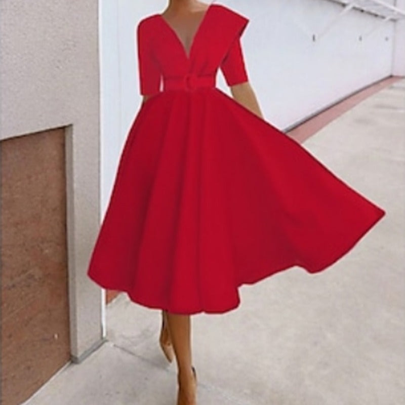 Denne betagende A-linje kjole fra Stilla forener stil og komfort i et fascinerende design. Den dybe V-udskæring og den yndefulde silhuet skaber et klassisk look, mens den svungne nederdel giver bevægelsesfrihed og en feminin udstråling.
