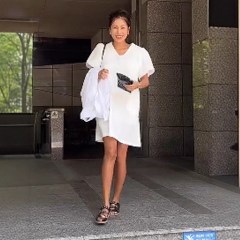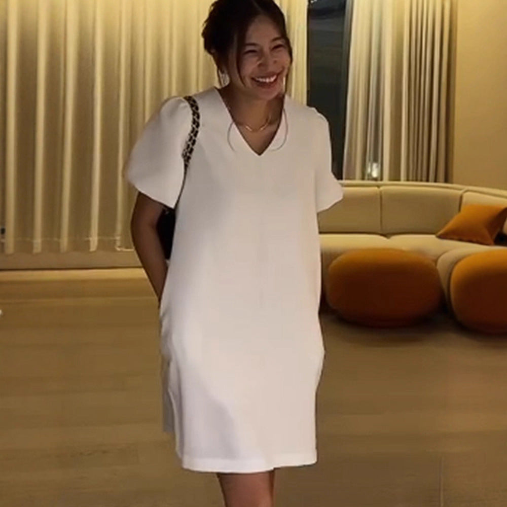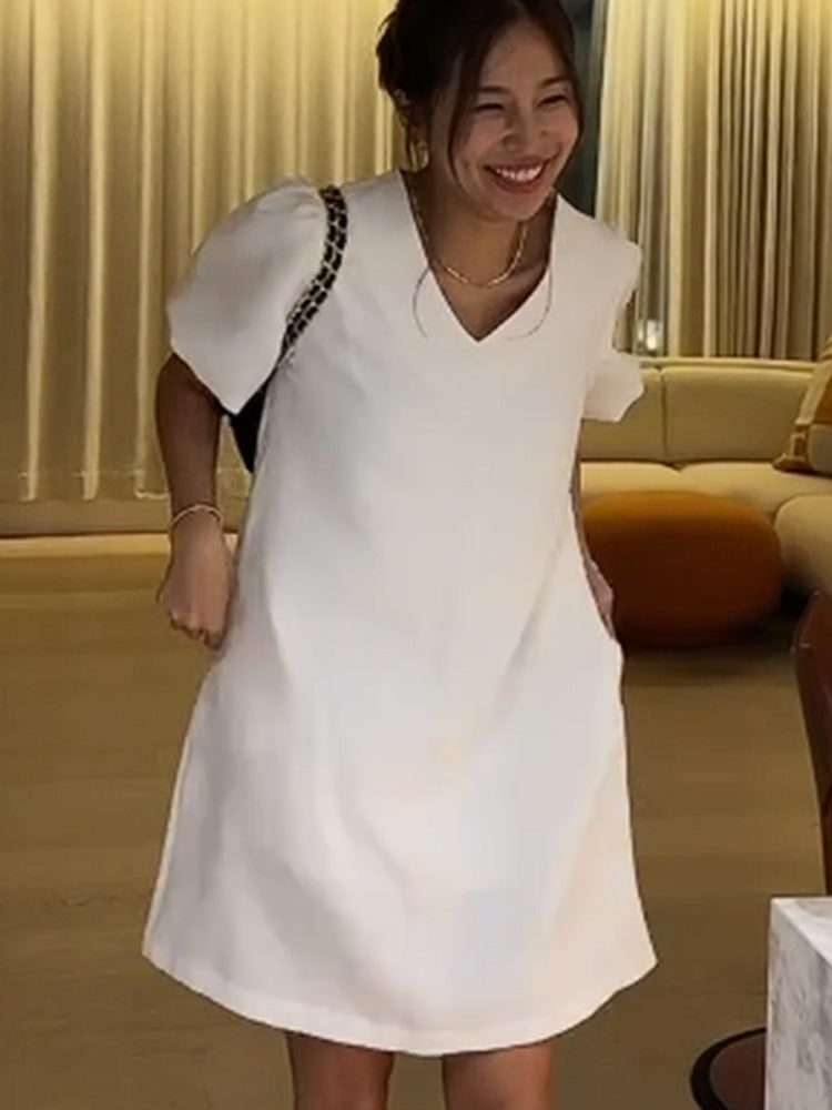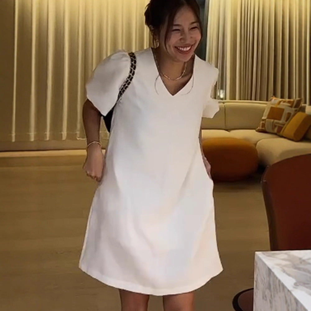 Opdag vores stilfulde dames A-linje kjole med elegante puffærmer, som forener komfort og modebevidsthed.