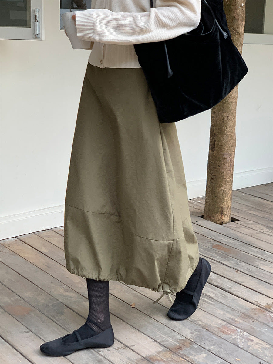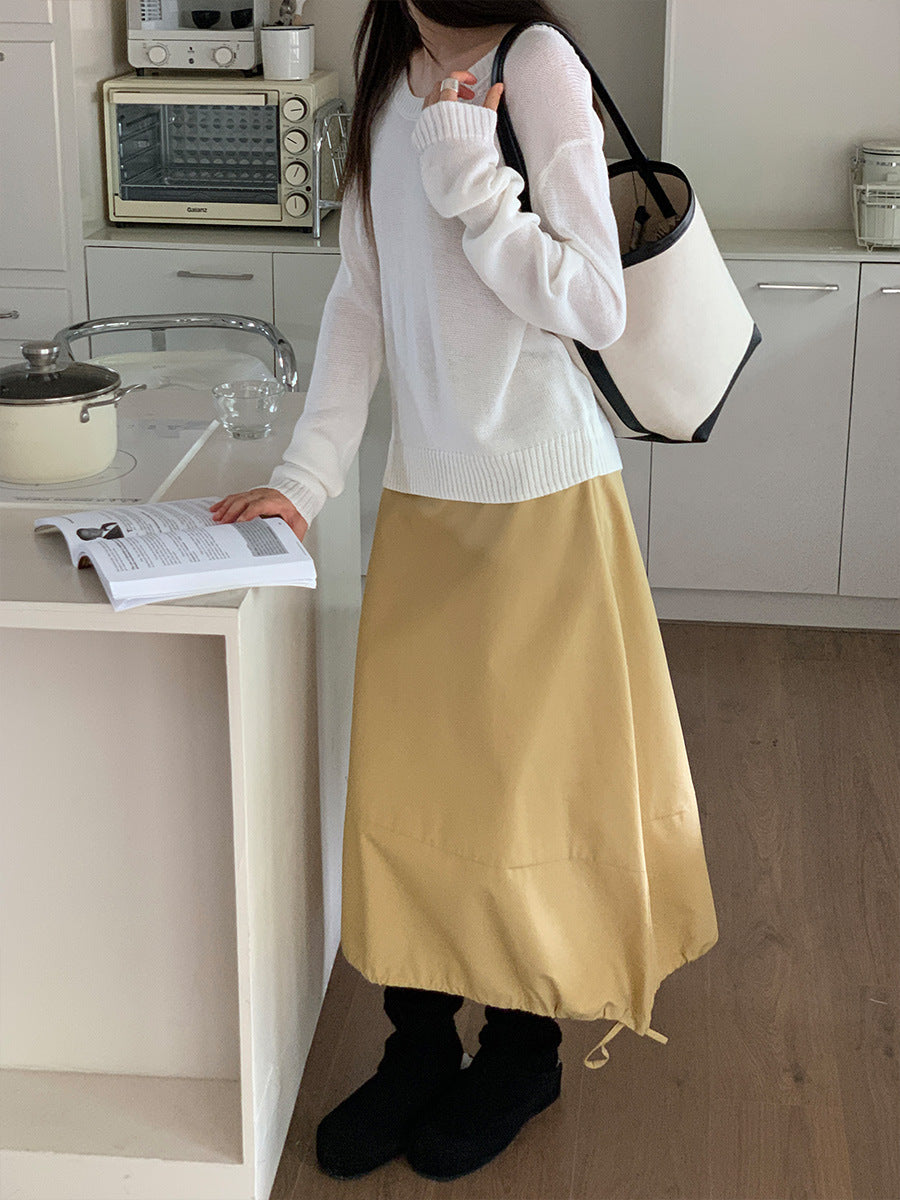 Udforsk den perfekte følgesvend til den varme tid med vores afslappede midi-nederdel. Denne nederdel imponerer med sit moderne design og de praktiske, justerbare gummibånd, som muliggør en individuel pasform.