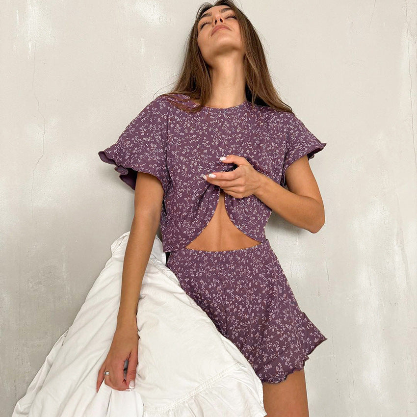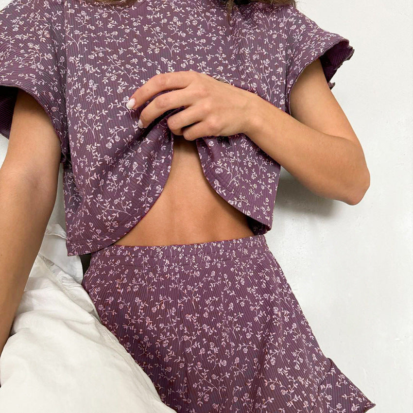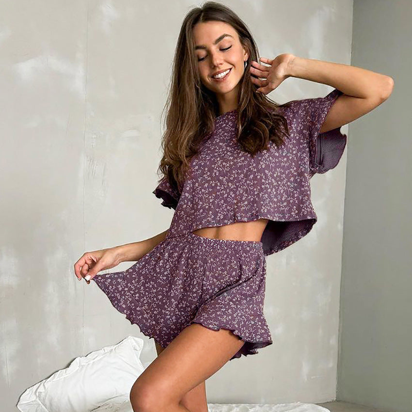 Opdag vores dames afslappede top- og shorts-sæt, der forener både stil og komfort. Ideelt til varme sommerdage eller afslappede aftener derhjemme, tilbyder dette sæt den perfekte kombination af afslappet chic og legende detaljer.
