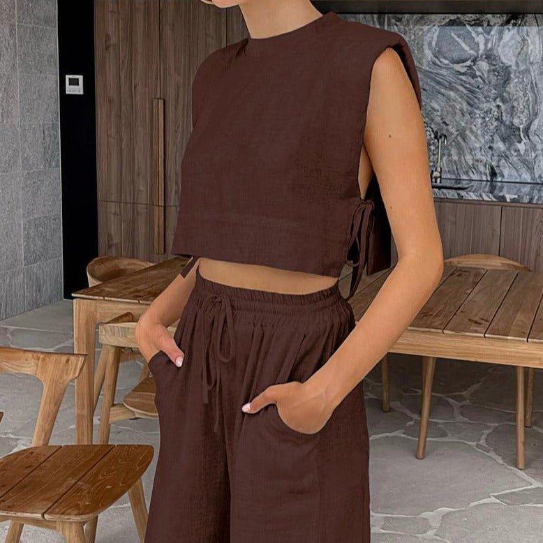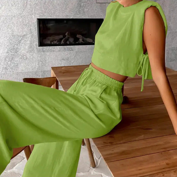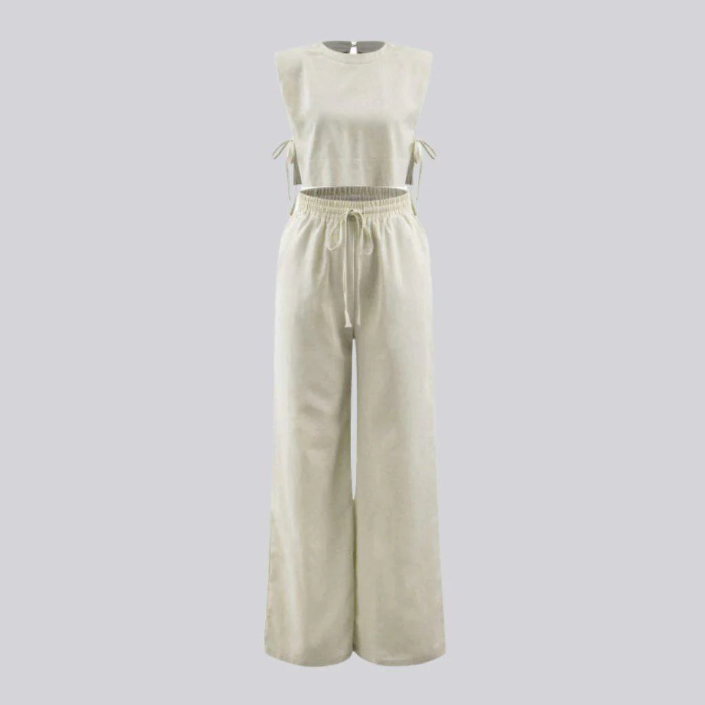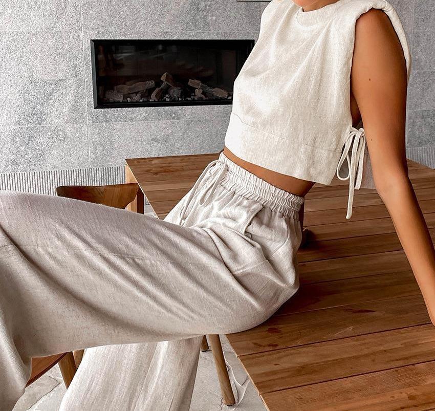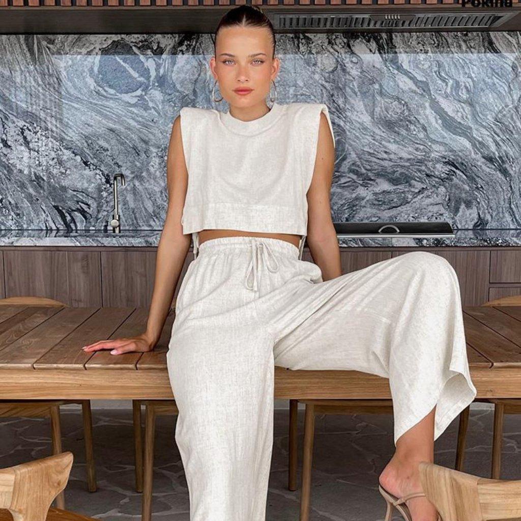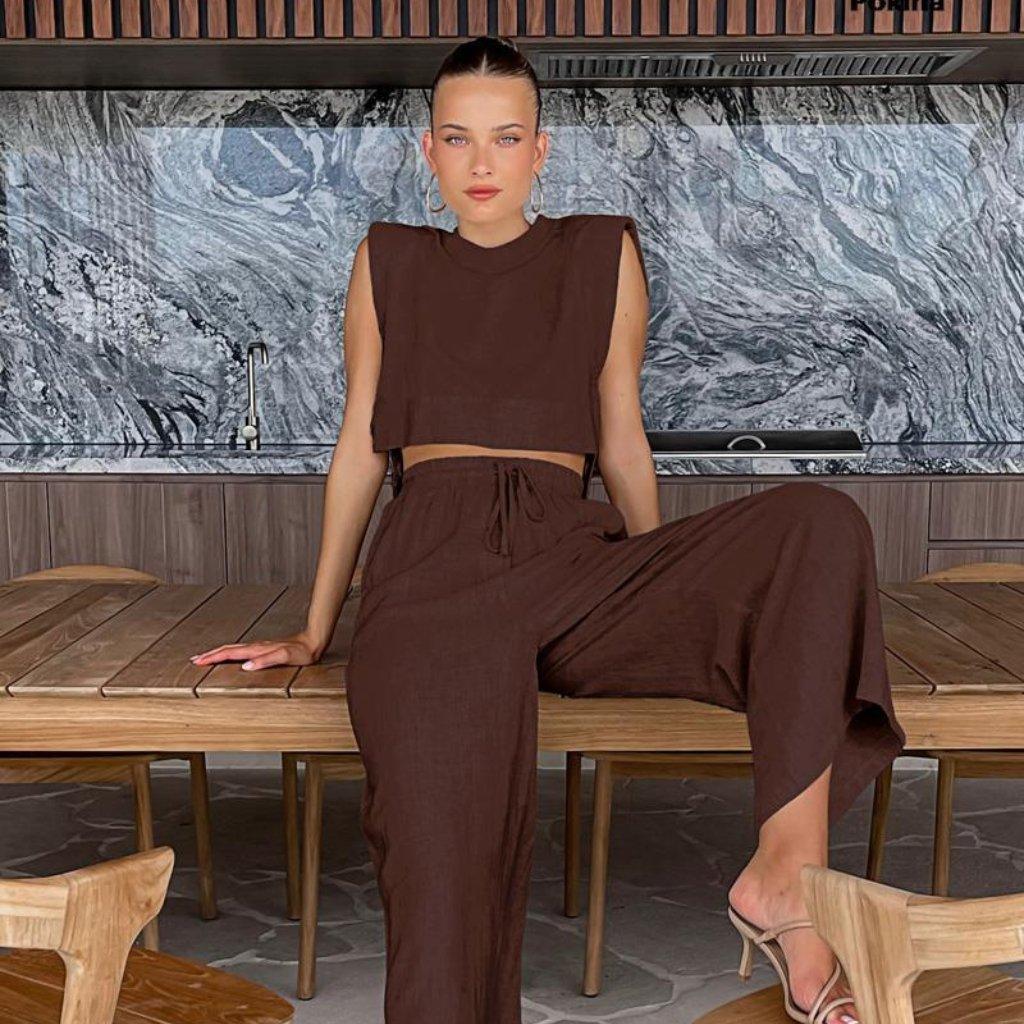 Oplev vores dames 2-delte sæt, der består af en enkel crop top og løse bukser. Dette outfit forener komfort og stil, ideelt til afslappede dage eller udflugter med venner.