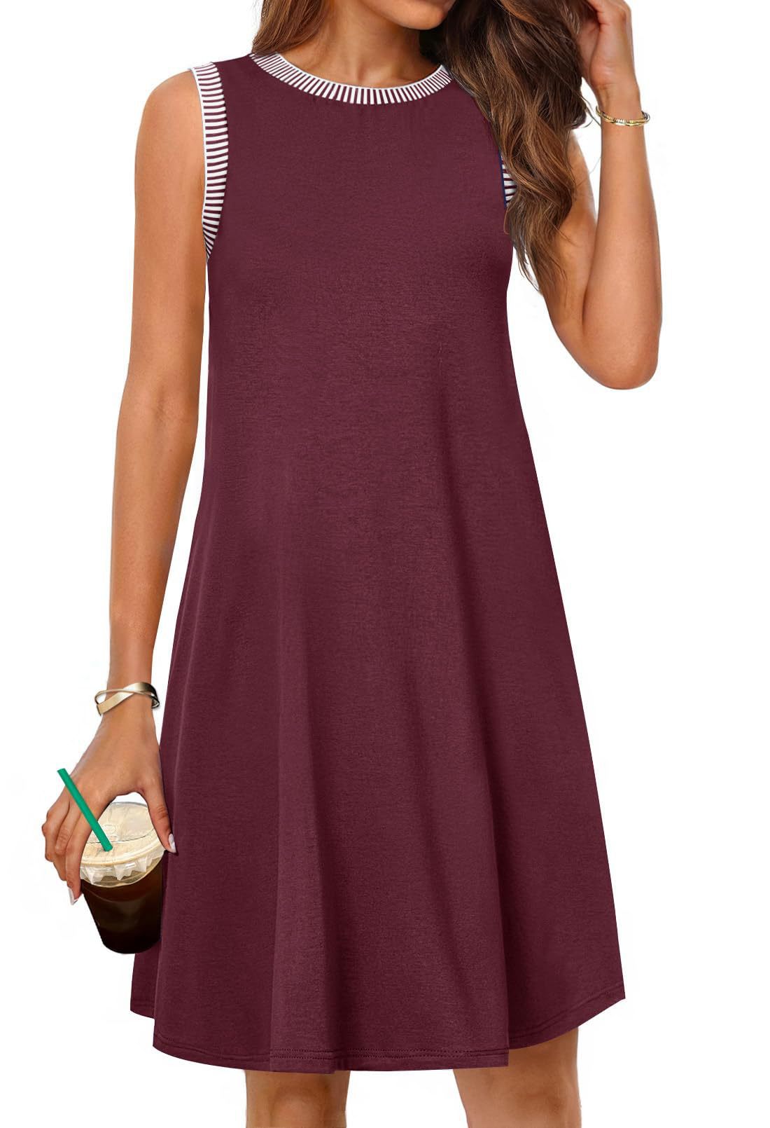 Opdag vores dames afslappede A-linie kjole med stribet udskæring, der tilbyder både komfort og stil. Ideel til varme dage, er denne kjole lavet af højkvalitets, åndbart materiale, der garanterer en behagelig bæreoplevelse.