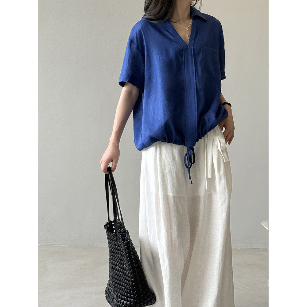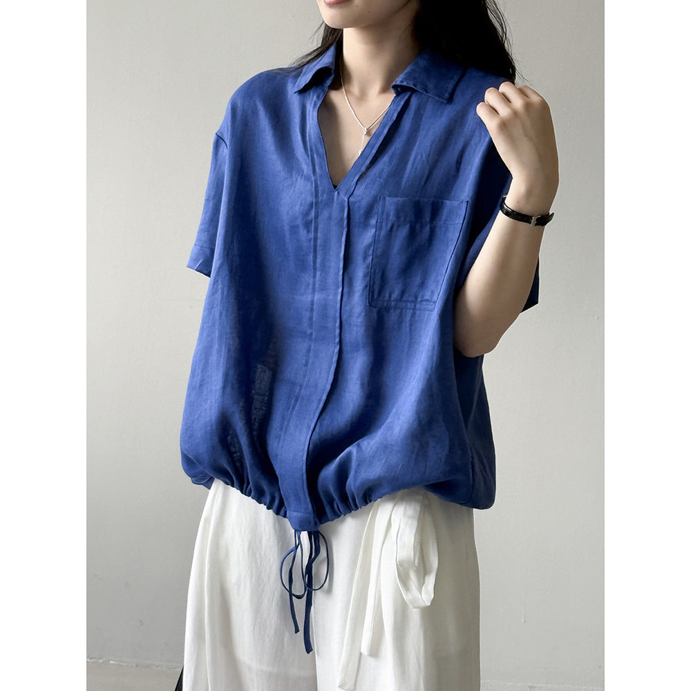 Opdag den stilfulde dames afslappede bluse med justerbar kant og brystlomme fra Stilla. Denne bluse forener komfort og trendy design, ideel til sommerdage og afslappede anledninger.