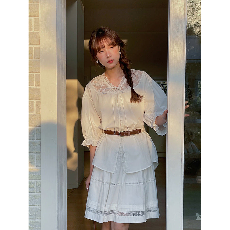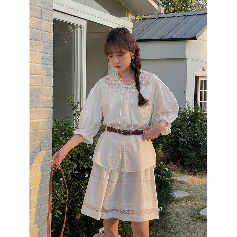 Udforsk den charmerende og alsidige dameskjorte med blonder og svingende skørt fra Stilla. Denne udsøgte skjorte forener elegance og komfort i et moderne design, der er perfekt til forskellige anledninger.
