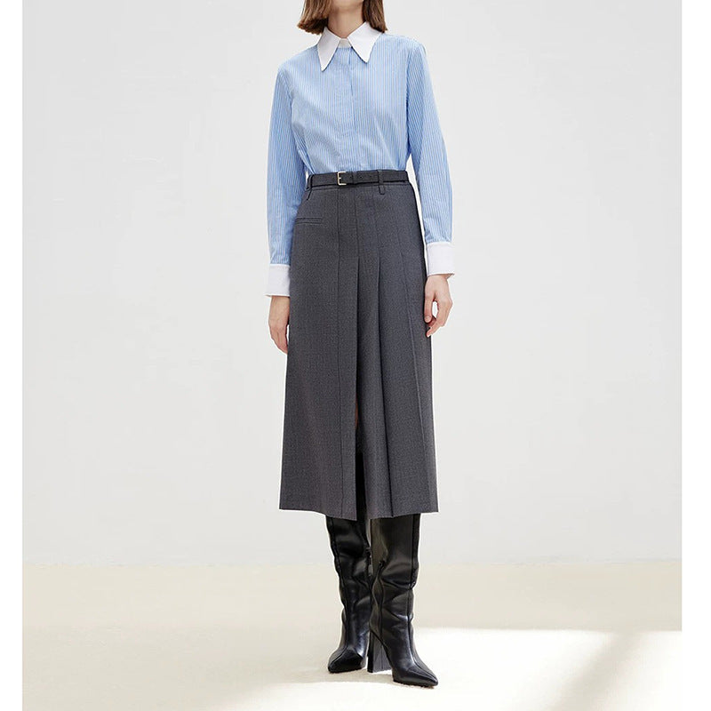 Opdag den perfekte kombination af stil og komfort med vores dames afslappede skjorte. Denne skjorte imponerer med sit moderne stribede design og den elegante, kontrasterende krave, der giver hvert outfit et strejf af raffinement.