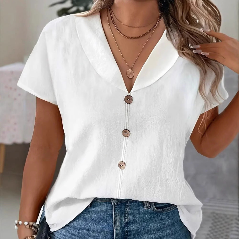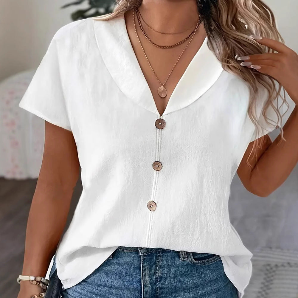 Opdag damernes afslappede bluseoberdel med stilfuld krave og dekorative knapper fra Stilla – perfekt til enhver lejlighed.
