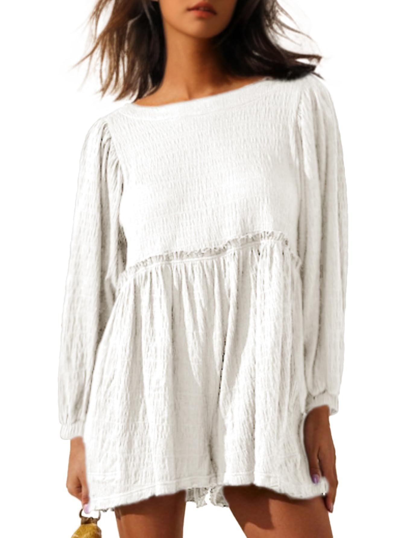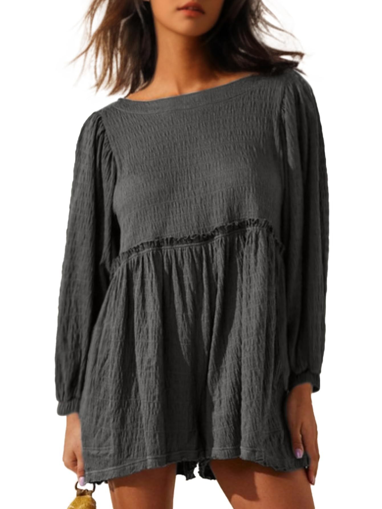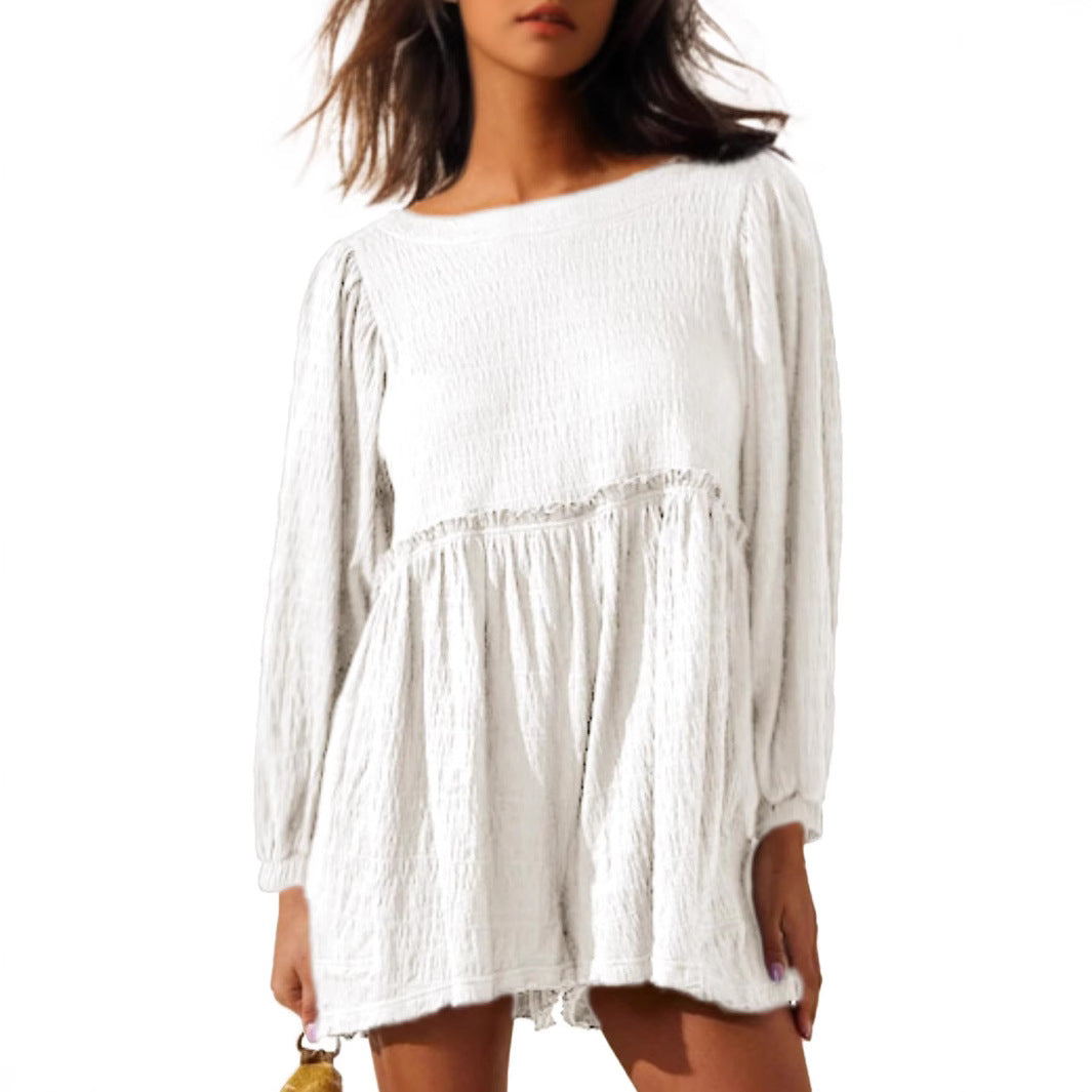 Opdag vores dames afslappede blusekjole med brede ærmer og volanter fra Stilla, der er ideel til afslappede dage og glade anledninger.
