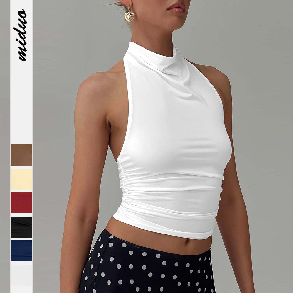 Opdag vores stilfulde dames crop-top, der perfekt forener komfort og elegance. Med en højhalset skæring og en dekorativ samling tilbyder denne top ikke kun et modisjt udseende, men også fremragende bærekomfort.