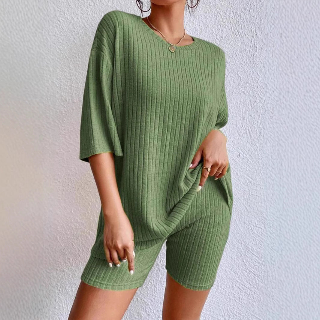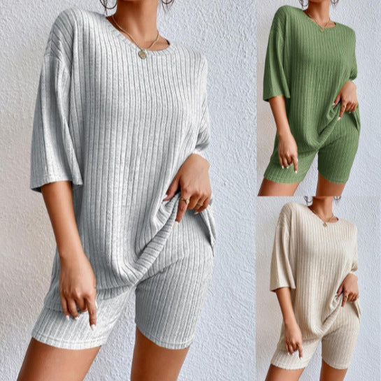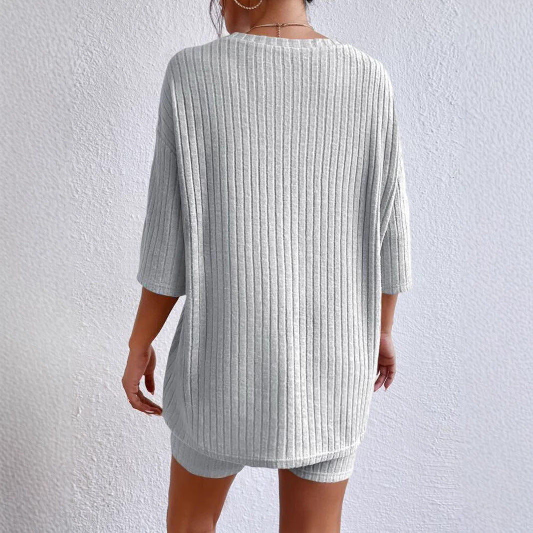 Opdag vores dames afslappede dobbelt-sæt med ribstruktur fra Stilla, der er ideelt til afslappede dage og elegante fritidslooks. Dette sæt består af en behagelig t-shirt og matchende biker-shorts, som begge er lavet af et højkvalitets, åndbart stof.
