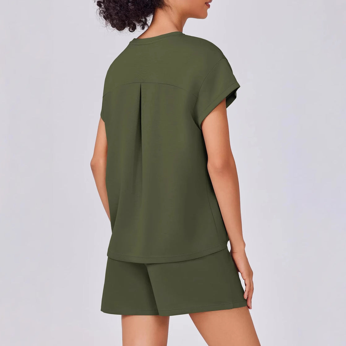 Opdag det perfekte fritids-sæt til damer fra Stilla, der forener både stil og komfort. Dette sæt består af en afslappet T-shirt og høj-elastiske shorts, ideelt til afslappede dage eller en aktiv livsstil.