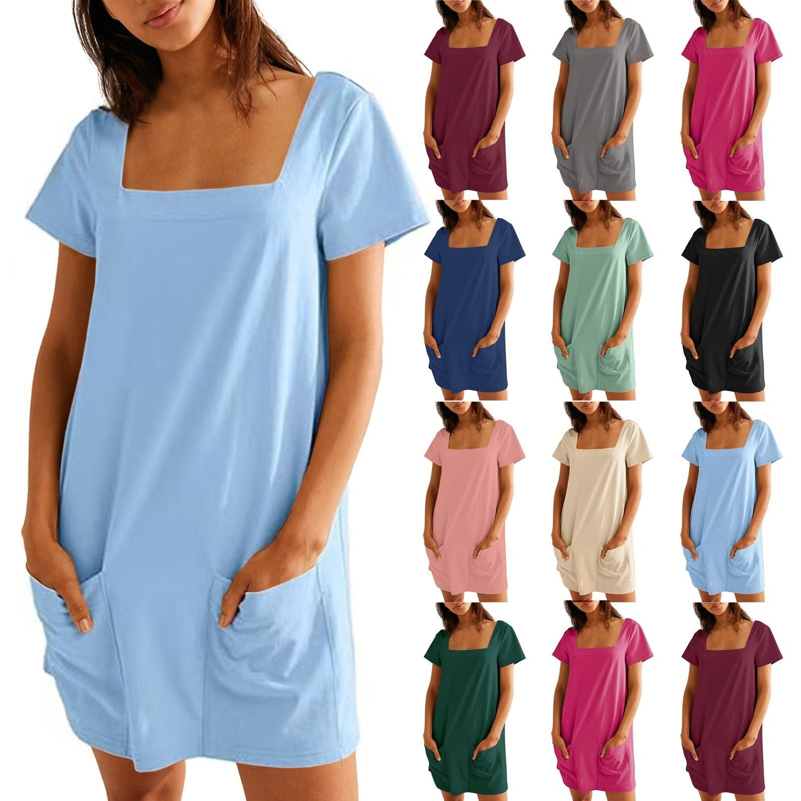 Opdag vores afslappede sommerkjole, der er perfekt til sommeren. Damekjolen kombinerer stil og komfort og er ideel til forskellige fritidsaktiviteter. Med en moderne, firkantet udskæring og korte ærmer tilbyder den en afslappet pasform, der giver velvære hele dagen.