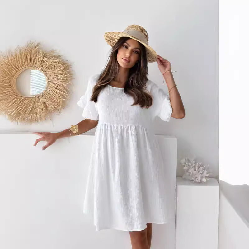 Opdag vores damesæsoner wraps kjole med luftige ærmer og smigrende snit lavet af kvalitetsmateriale. Ideel til afslappede sommerdage eller uformelle aftenture, tilbyder denne kjole både komfort og stil.