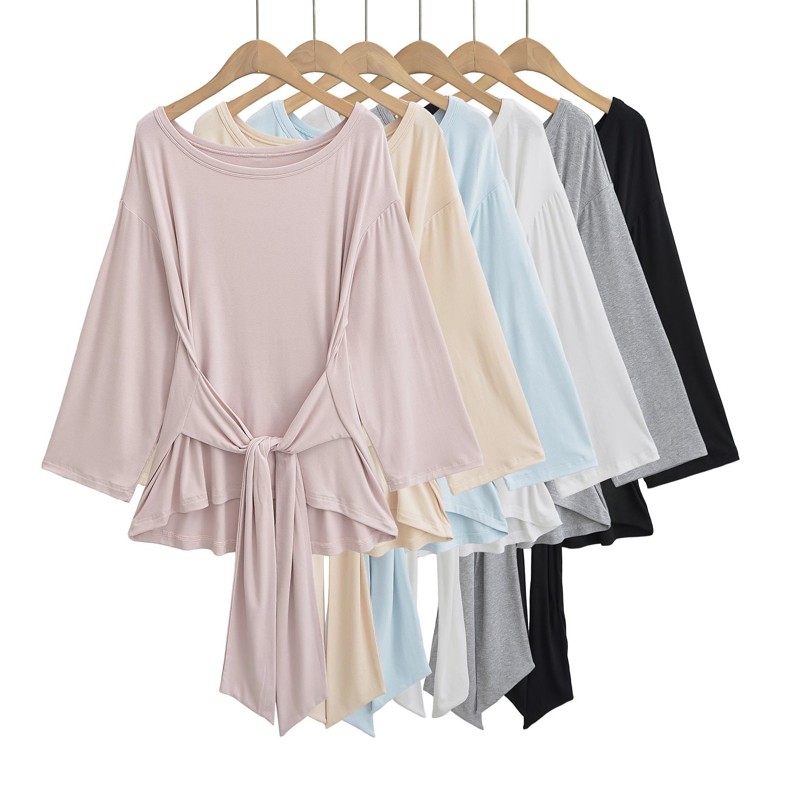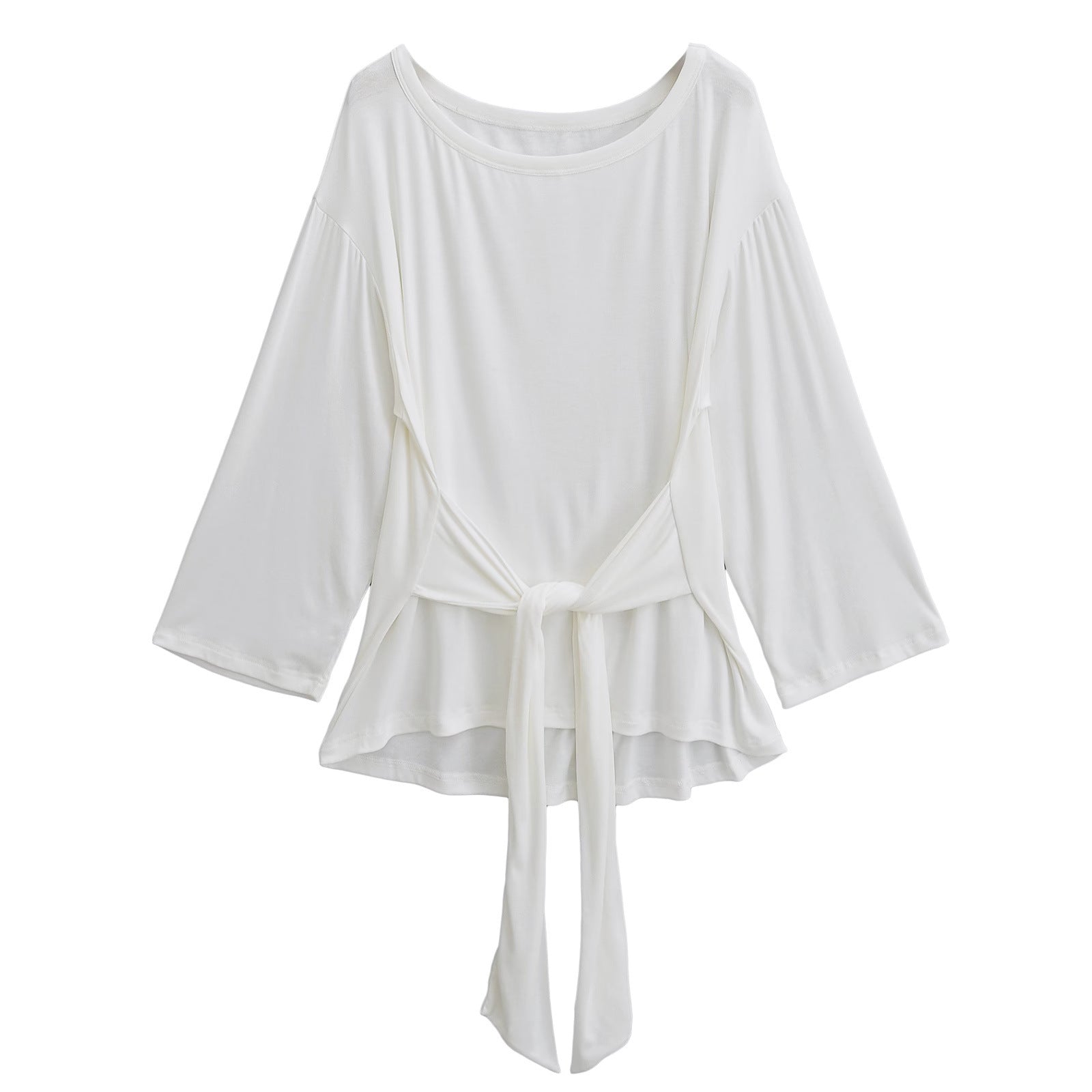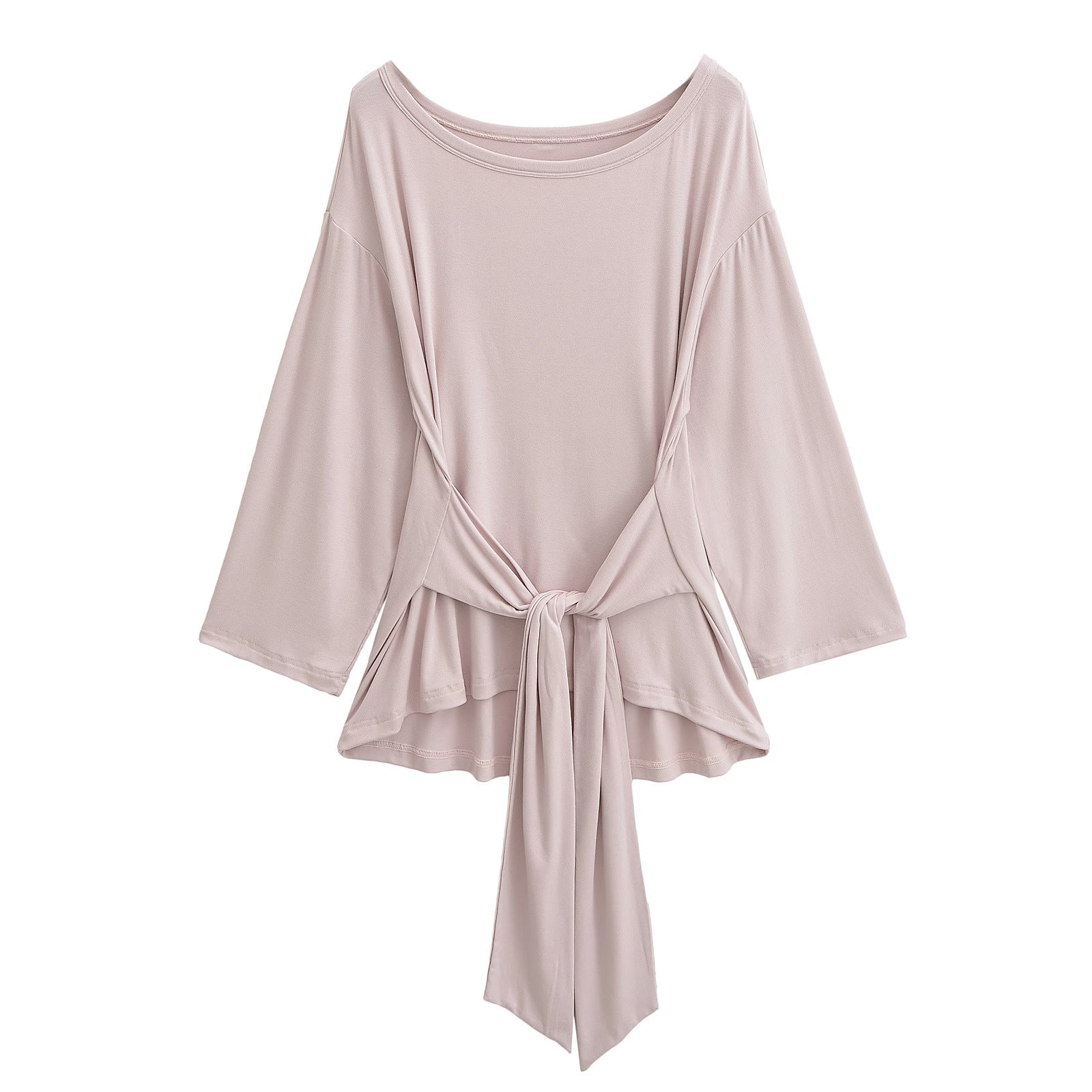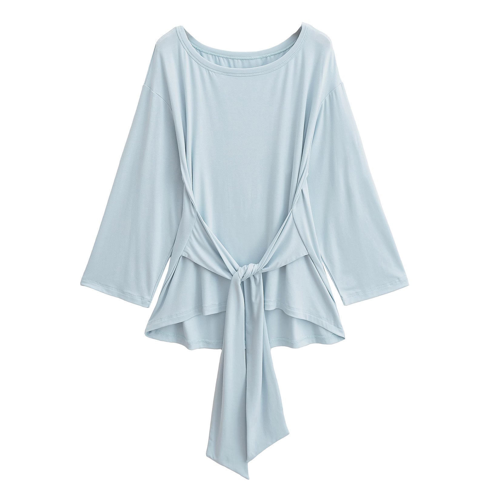 Oplev vores dames afslappede indpakningsbluse, der forener elegance og komfort. Denne bluse imponerer med en moderne skæring og fine flæsedetaljer, som giver den en romantisk flair. Den sideværts knude tilbyder ikke kun et trendy look, men sikrer også en individuel pasform.
