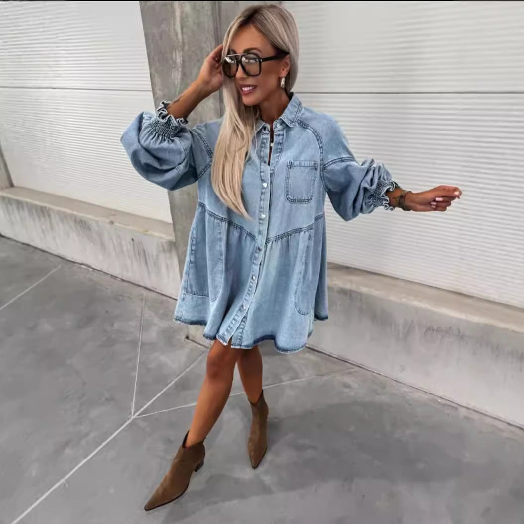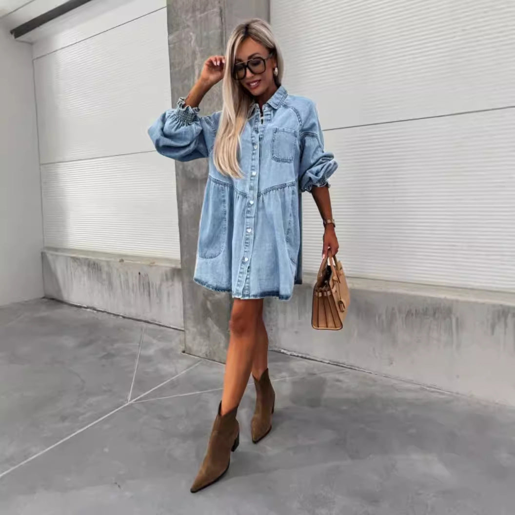 Dette dames jeanskjortekjole fra Stilla forener stil og komfort og er det ideelle tøj til enhver lejlighed. Med en smigrende pasform, der elegant omfavner figuren, er denne kjole både afslappet og chic.