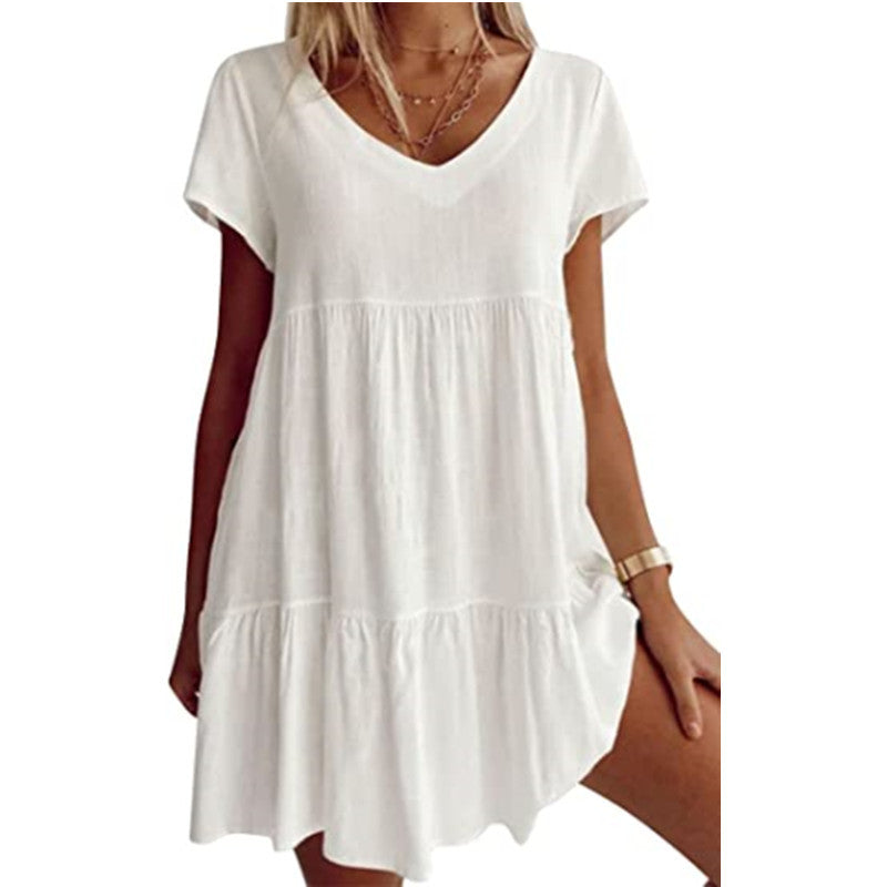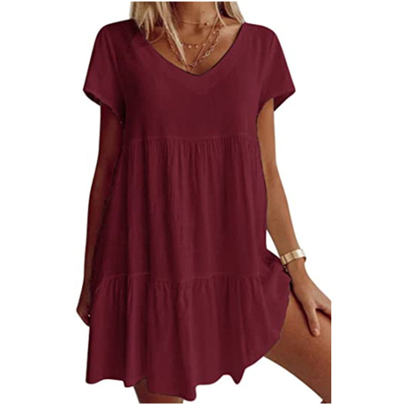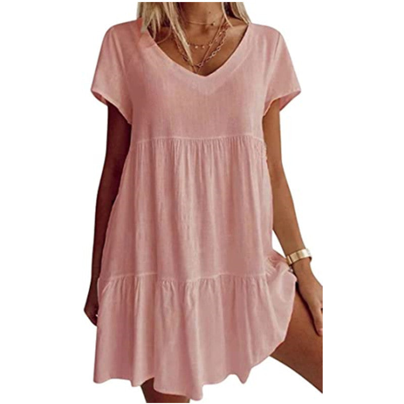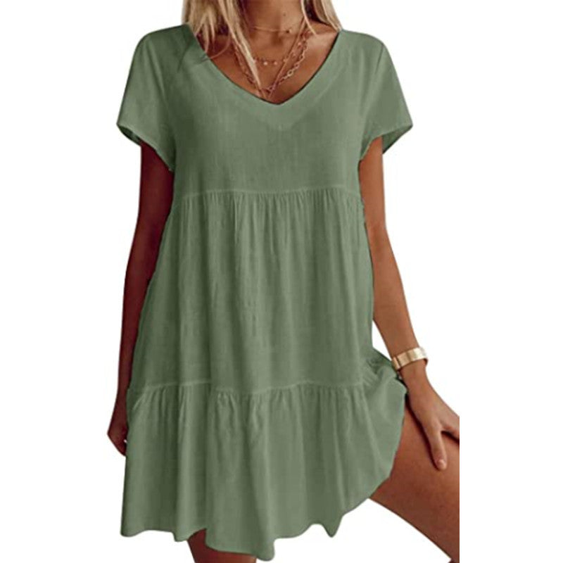 Opdag vores afslappede jersey kjole med voluminøs skirt og V-hals fra Stilla, det perfekte valg til afslappede sommerdage. Denne kjole forener stil og komfort for at give dig en ubesværet bæreoplevelse.