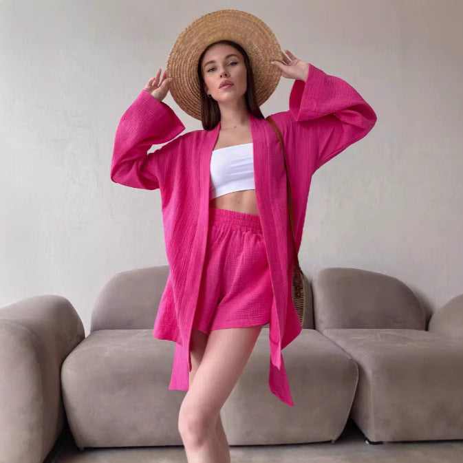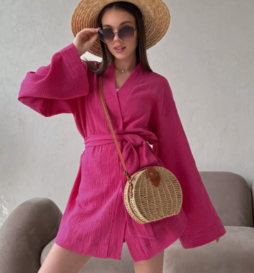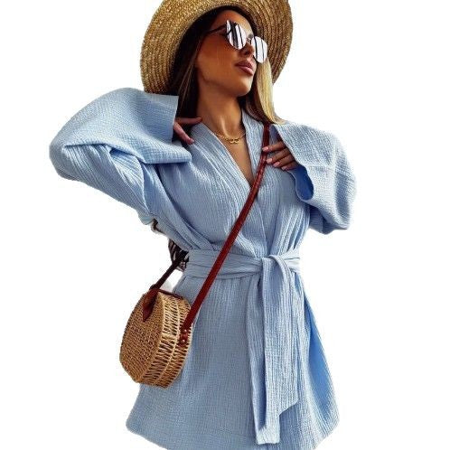 Med denne kimono-jakke bringer du elegance til afslappede outfits og er samtidig moderigtigt klædt. Et must-have for enhver modebevidst dame!