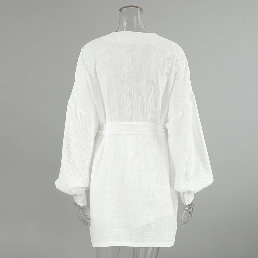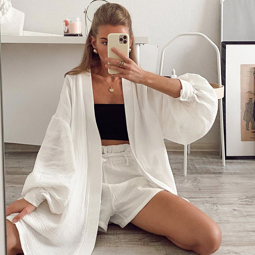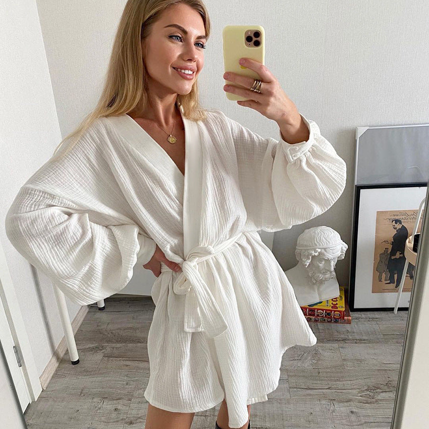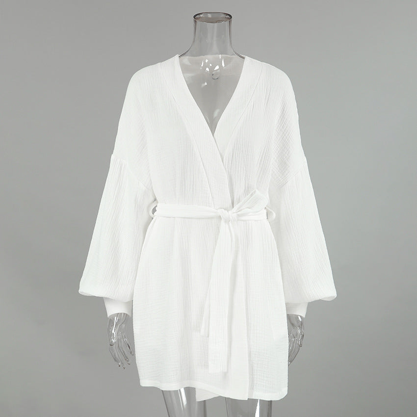Fremstillet af et premium-materiale tilbyder denne robe ikke kun komfort, men også åndbarhed, perfekt til ethvert vejr. De løse, overdimensionerede ærmer giver et moderne look og sikrer ubegribelig bevægelsesfrihed.