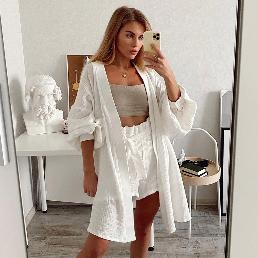 Opdag den elegante dame kimono-robe, ideel til afslappede dage derhjemme eller til en stilfuld optræden udendørs. Denne unikke robe tilbyder en rummelig, afslappet stil, der er velegnet til alle kropstyper.