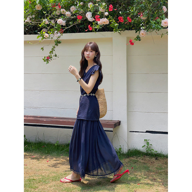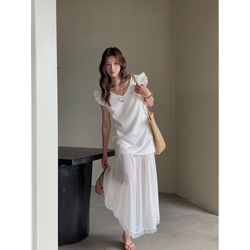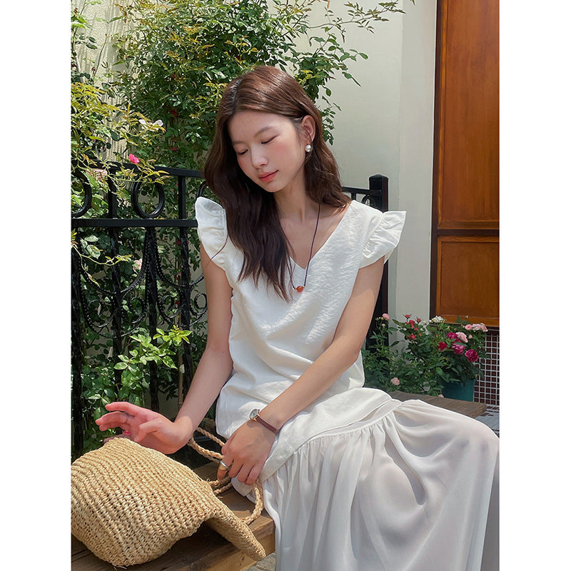 Denne elegante kjole forener komfort og stil og er ideel til mange anledninger. Den luftige pasform sikrer en behagelig følelse, mens de dekorative flæseærmer tilføjer et feminint præg.