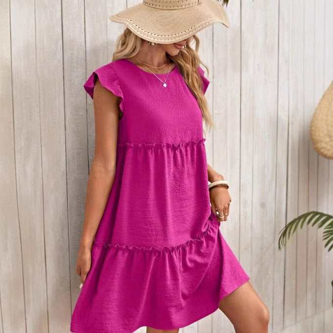 Opdag den perfekte sommerkjole til ubesværet elegance! Vores dames afslappede kortkjole med glade flæser og voluminøs snit Stilla begejstrer med sit luftige design og de feminine detaljer.