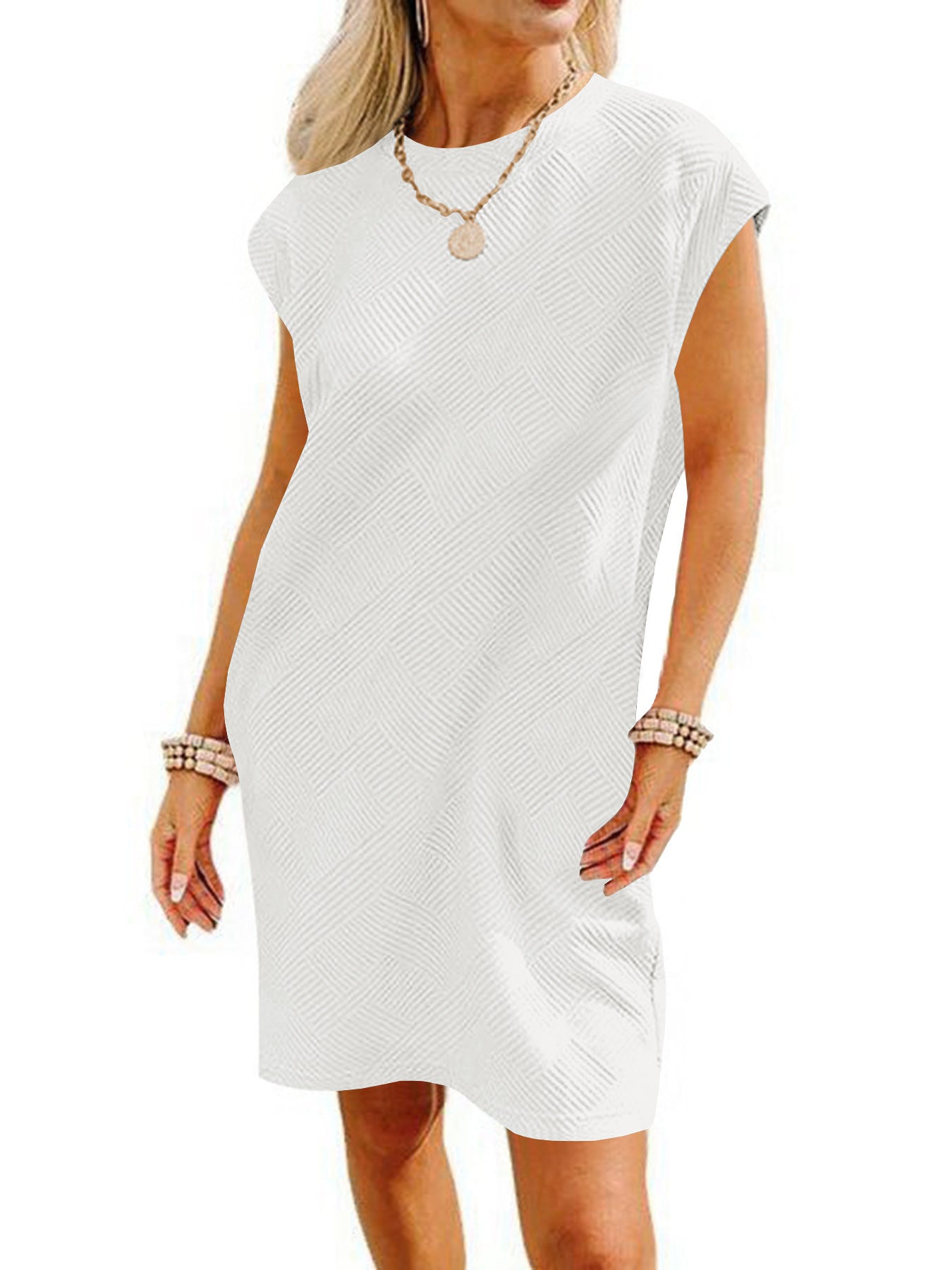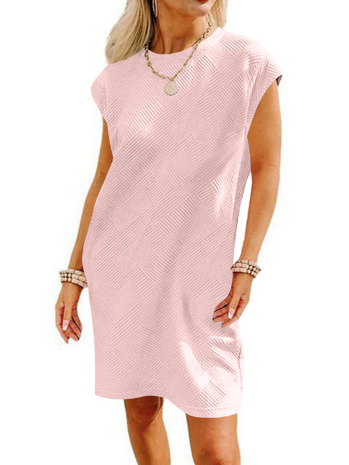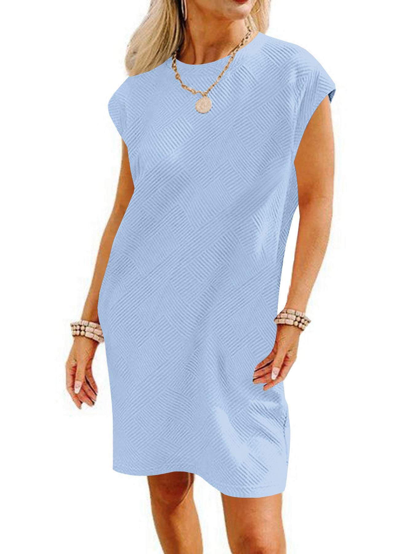 Opdag vores dames afslappede kortkjole med et fashionable strukturmønster, der er ideelt til afslappede sommeroutfits. Med et enkelt, men elegant design forener denne kjole komfort og stil.