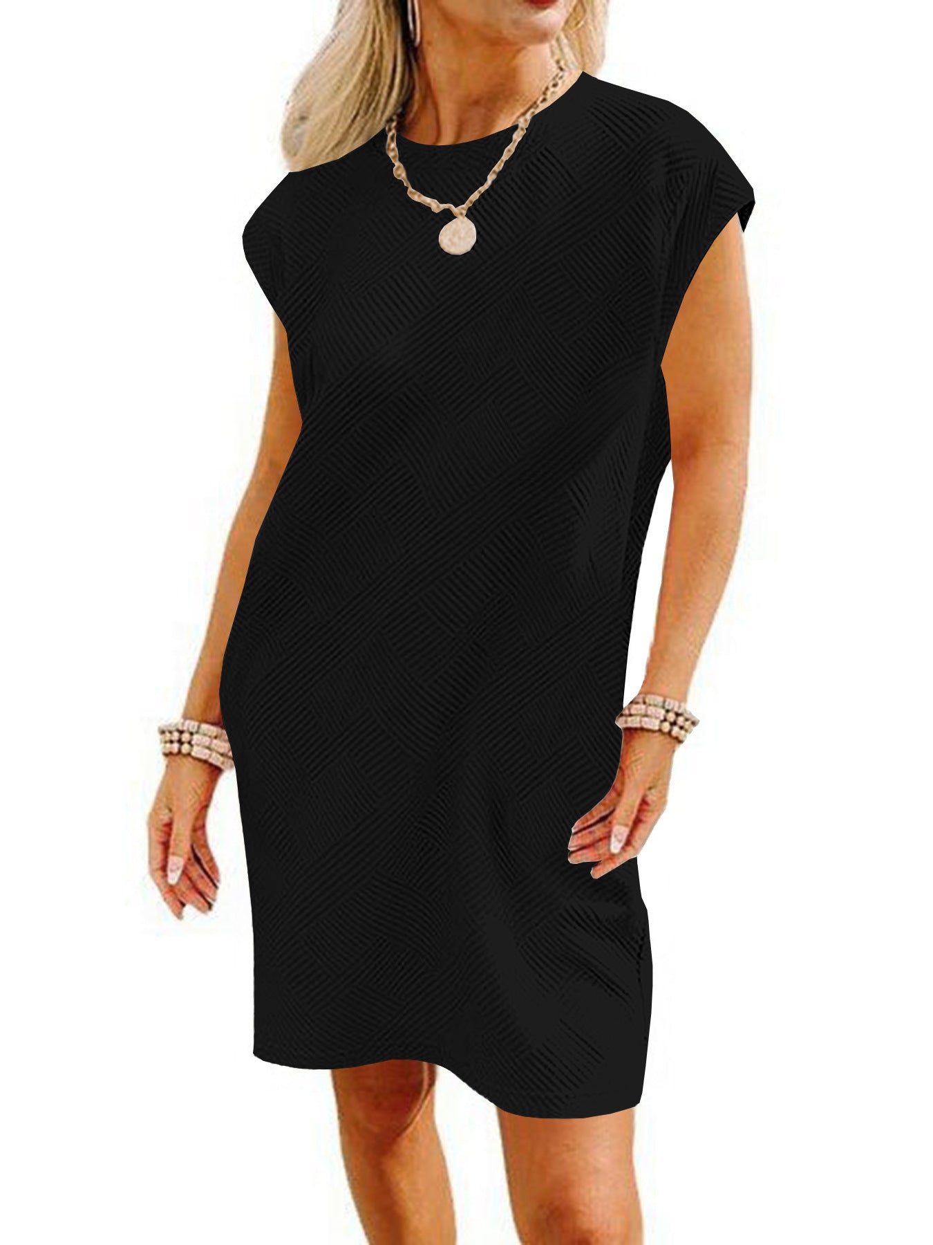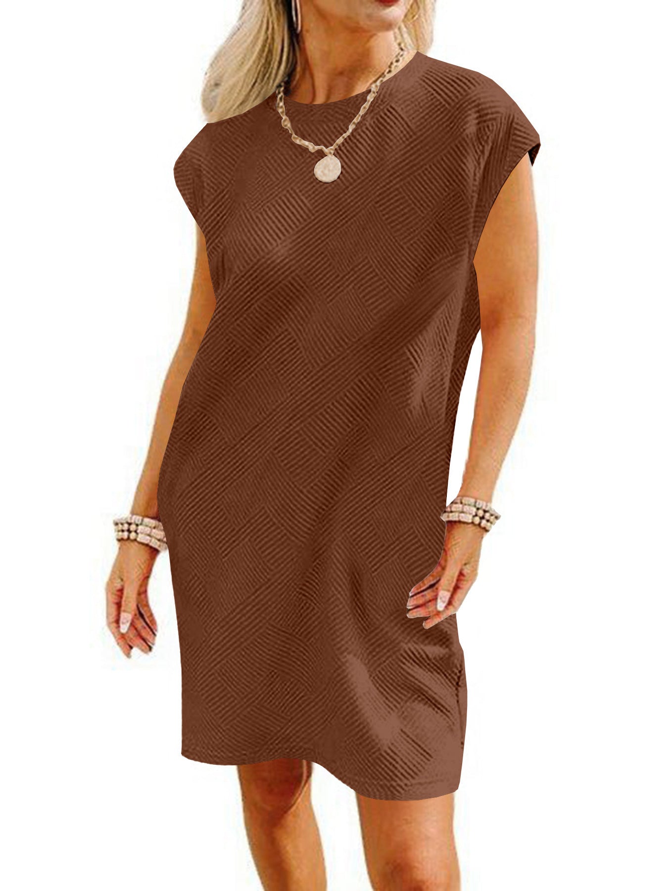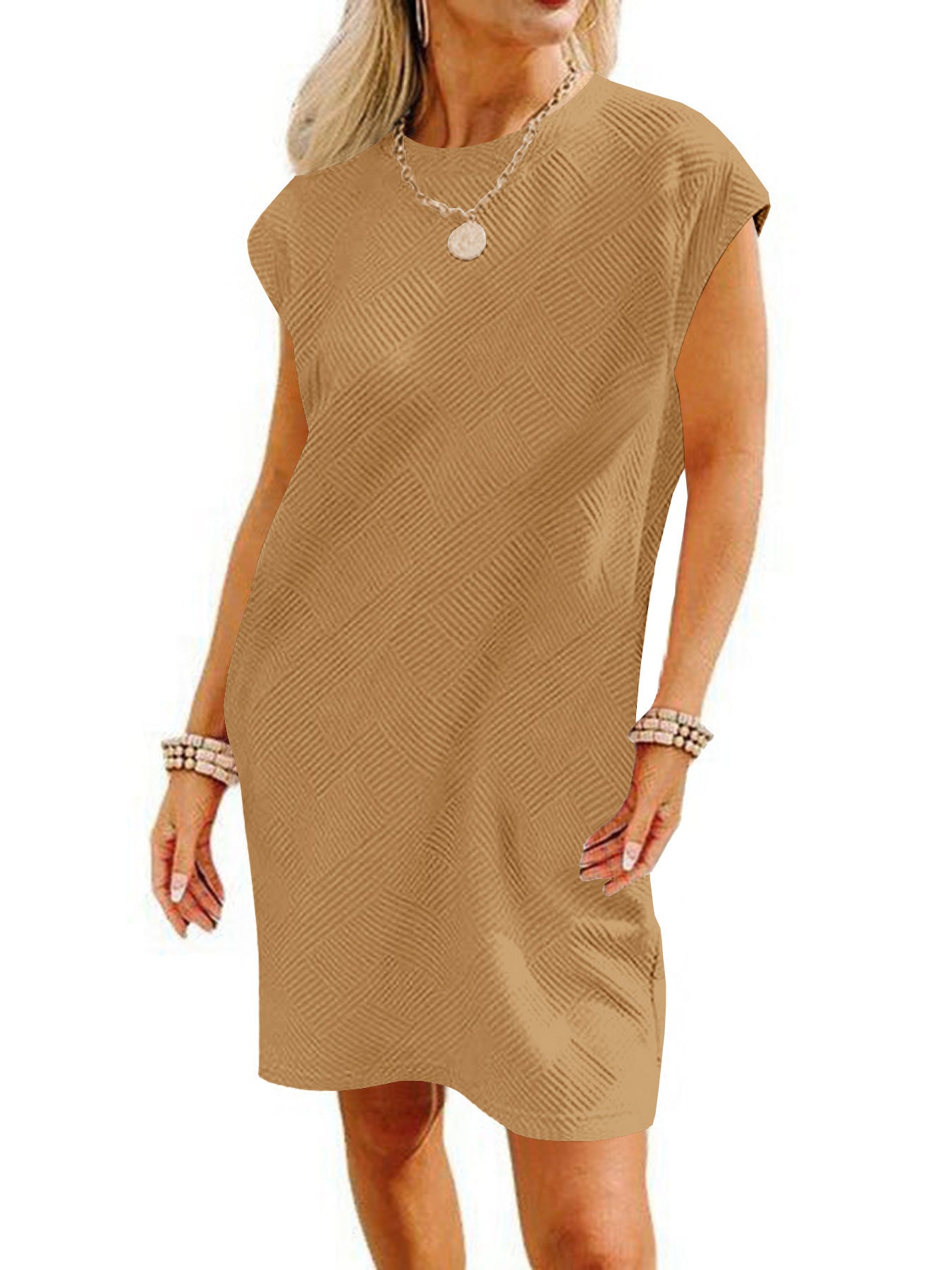 Opdag vores dames afslappede kortkjole med et fashionable strukturmønster, der er ideelt til afslappede sommeroutfits. Med et enkelt, men elegant design forener denne kjole komfort og stil.