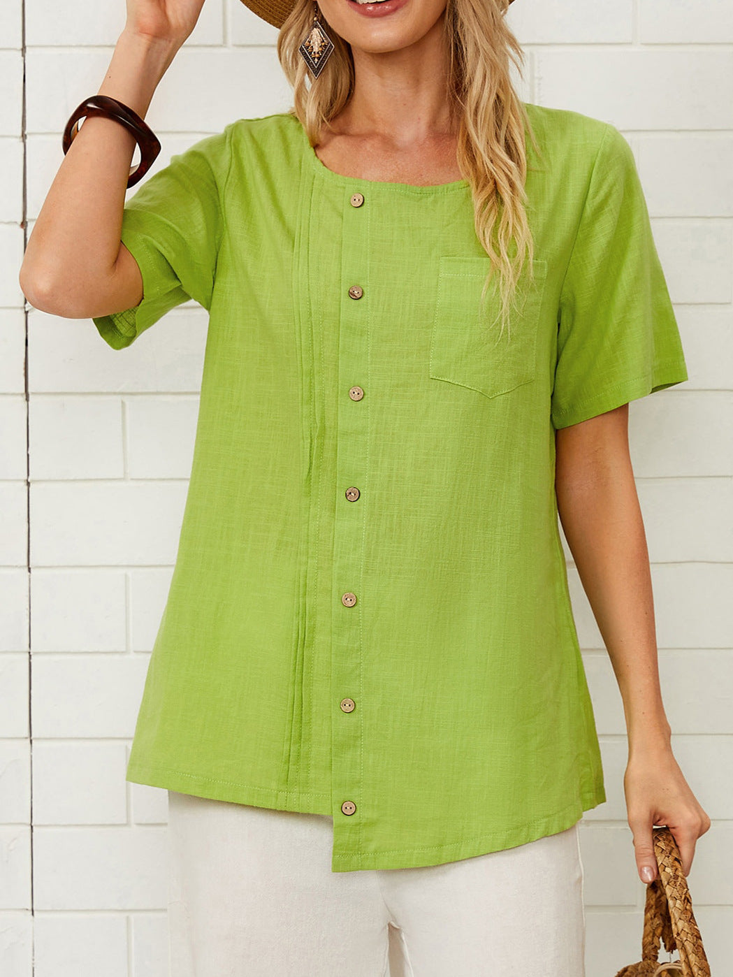 Denne dames kortærmede bluse kombinerer stilfuld raffinement med casual komfort og er ideel til enhver anledning. Uanset om det er i hverdagen eller til en aften ude, vil dette alsidige opslag blive din nye yndlingsfølger. Her er de fremragende funktioner:
