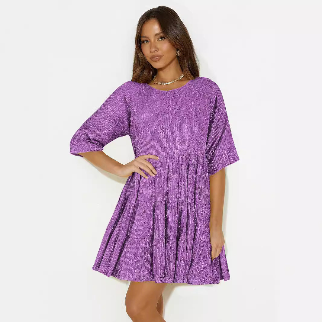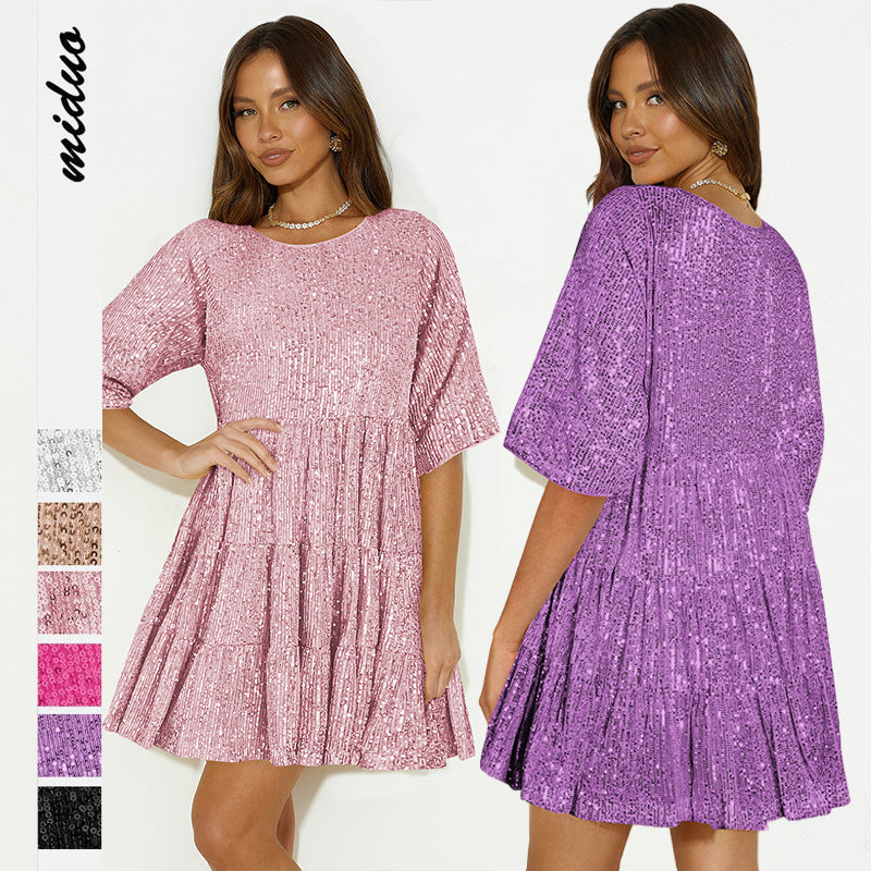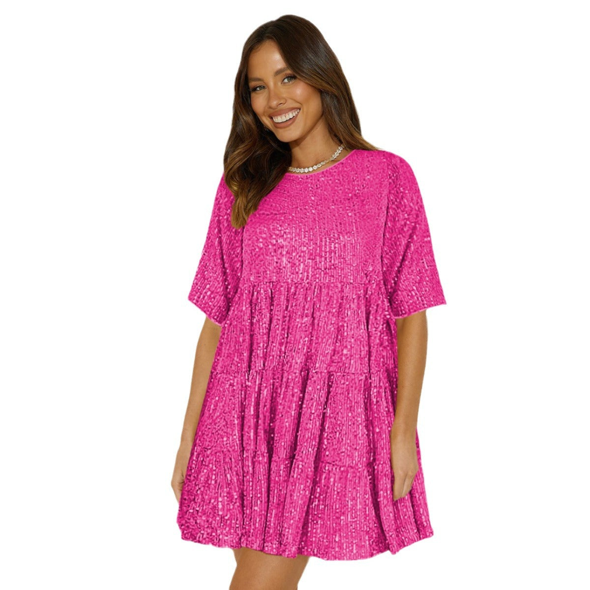 Opdag vores dames afslappede kortærmede kjole, der med sit trendy design og den komfortable pasform begejstrer. Denne kjole i let bomuldsblanding er perfekt til sommeren og giver et afslappet look til enhver lejlighed.
