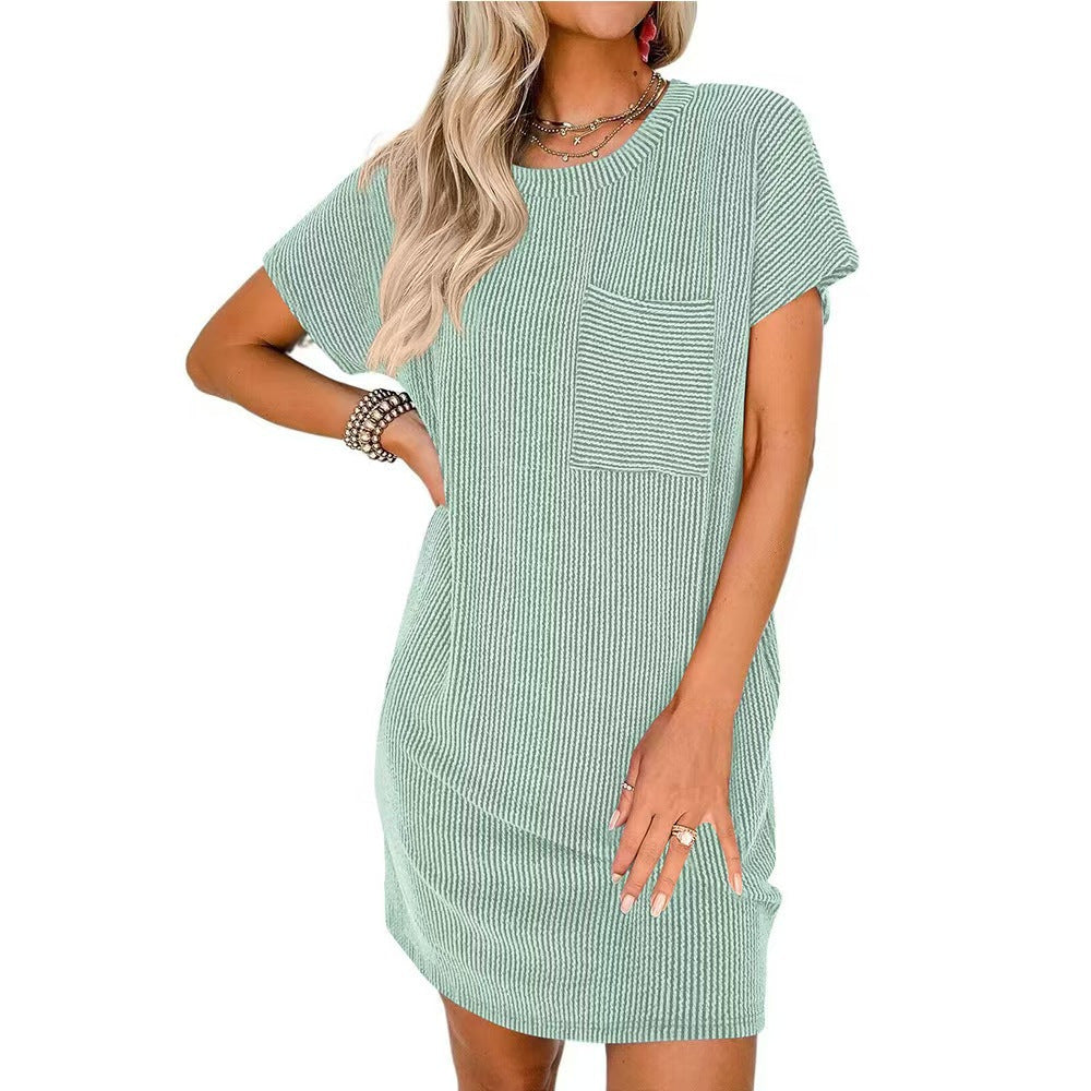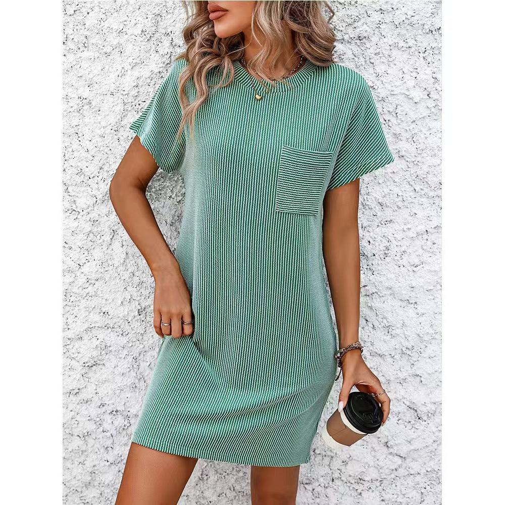 Opdag vores fantastiske dames kortærmede kjole med brystlomme fra Stilla. Denne kjole forener stil og komfort på perfekt vis og er ideel til hverdagen eller afslappede fritidsaktiviteter.