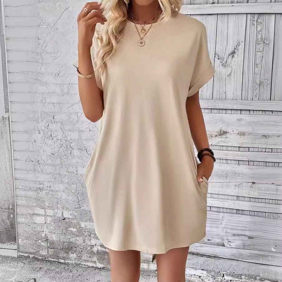 Opdag vores trendy kortærmet kjole, der kombinerer perfekt komfort og stil. Ideel til de varme dage, kan denne kjole kombineres på mange måder og sikrer et fashionable udseende.