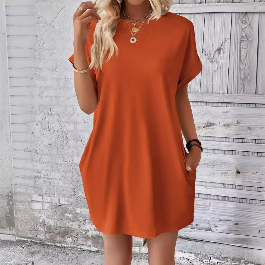 Skab stil med denne elegante kortærmede kjole i din garderobe og nyd kombinationen af stil og funktionalitet!