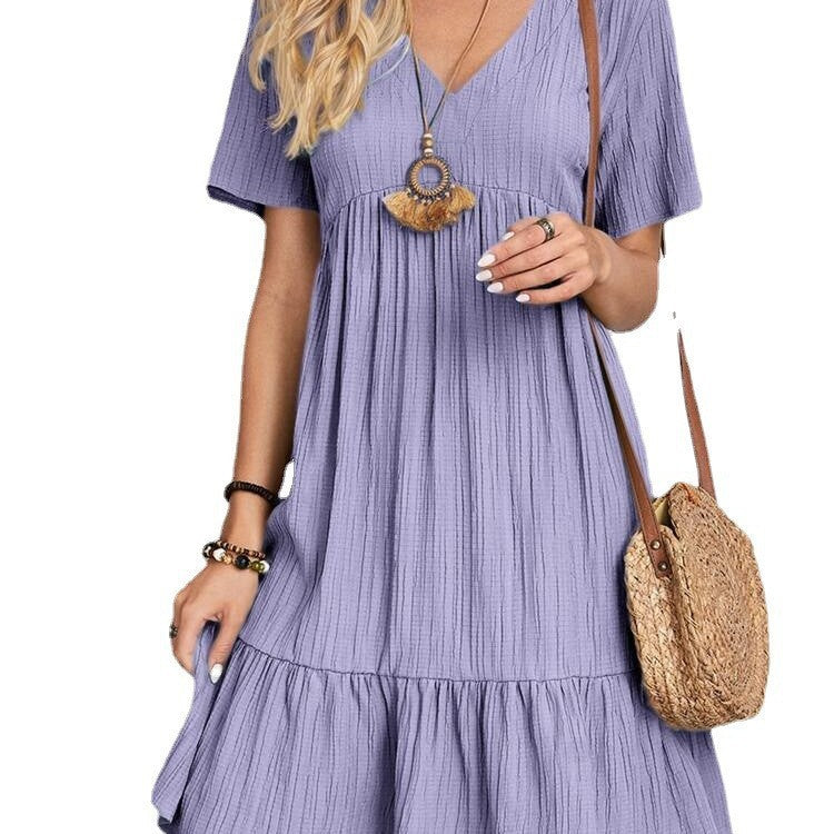 Oplev vores dames afslappede kortærmede kjole med flæser og V-udskæring fra Stilla, der er perfekt til sommerdage og afslappede fritidsaktiviteter. Denne kjole forener stil og komfort og er det ideelle tøjvalg til enhver lejlighed.