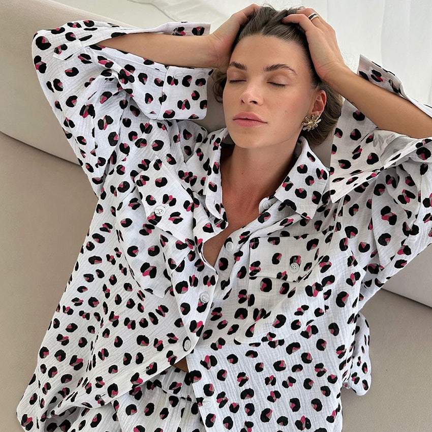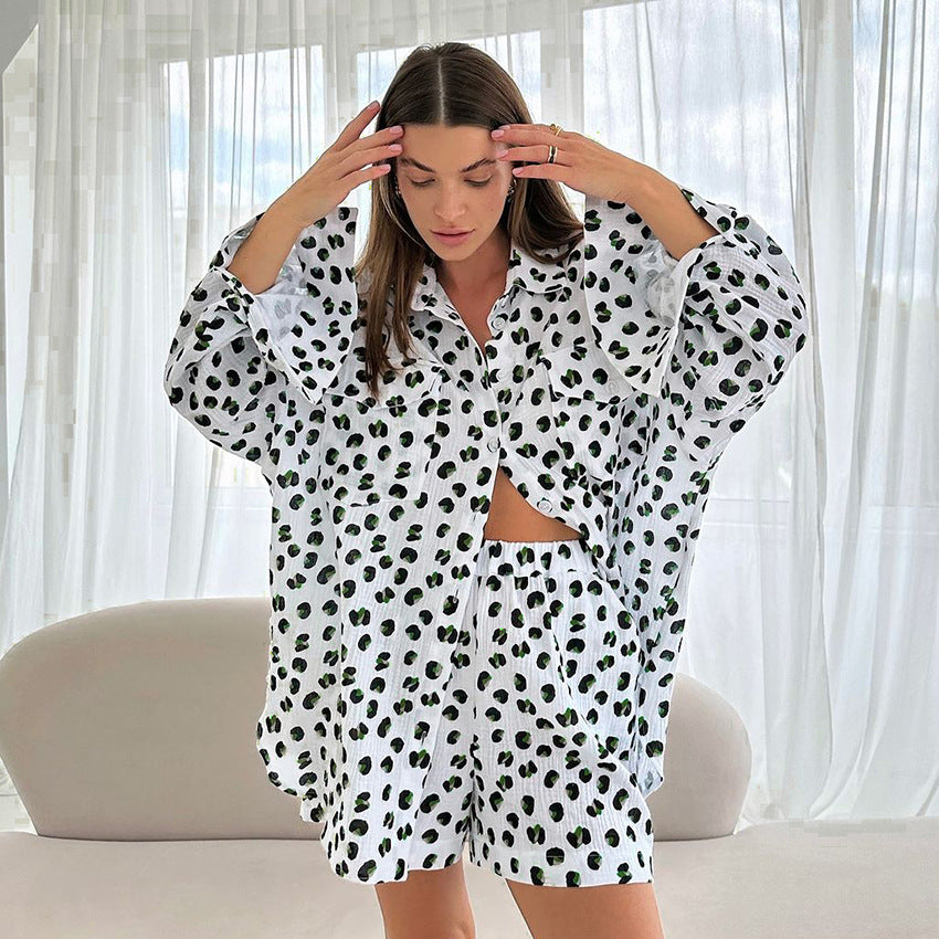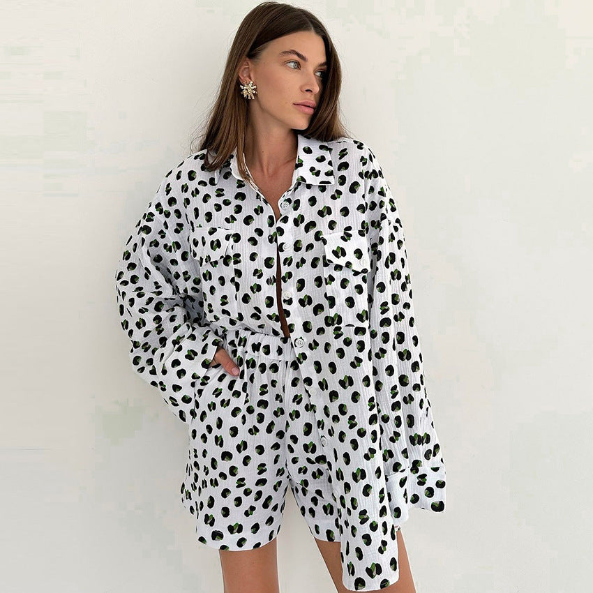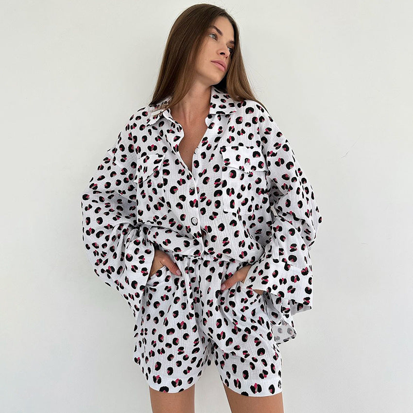 Opdag vores fantastiske dametøj, der består af en afslappet T-shirt med korte ærmer og et matchende par shorts. Dette ensemble imponerer med sit unikke, moderne leo-mønster og tilbyder både stil og komfort.