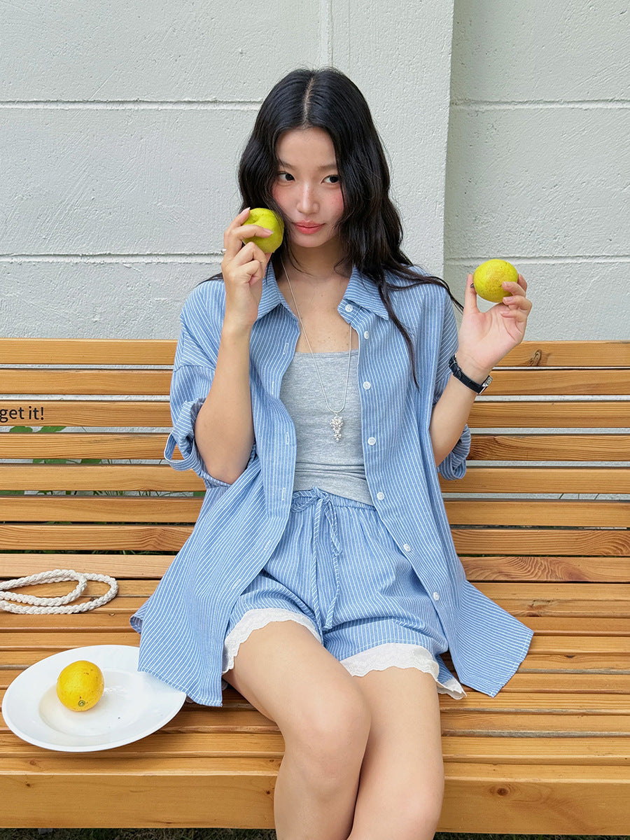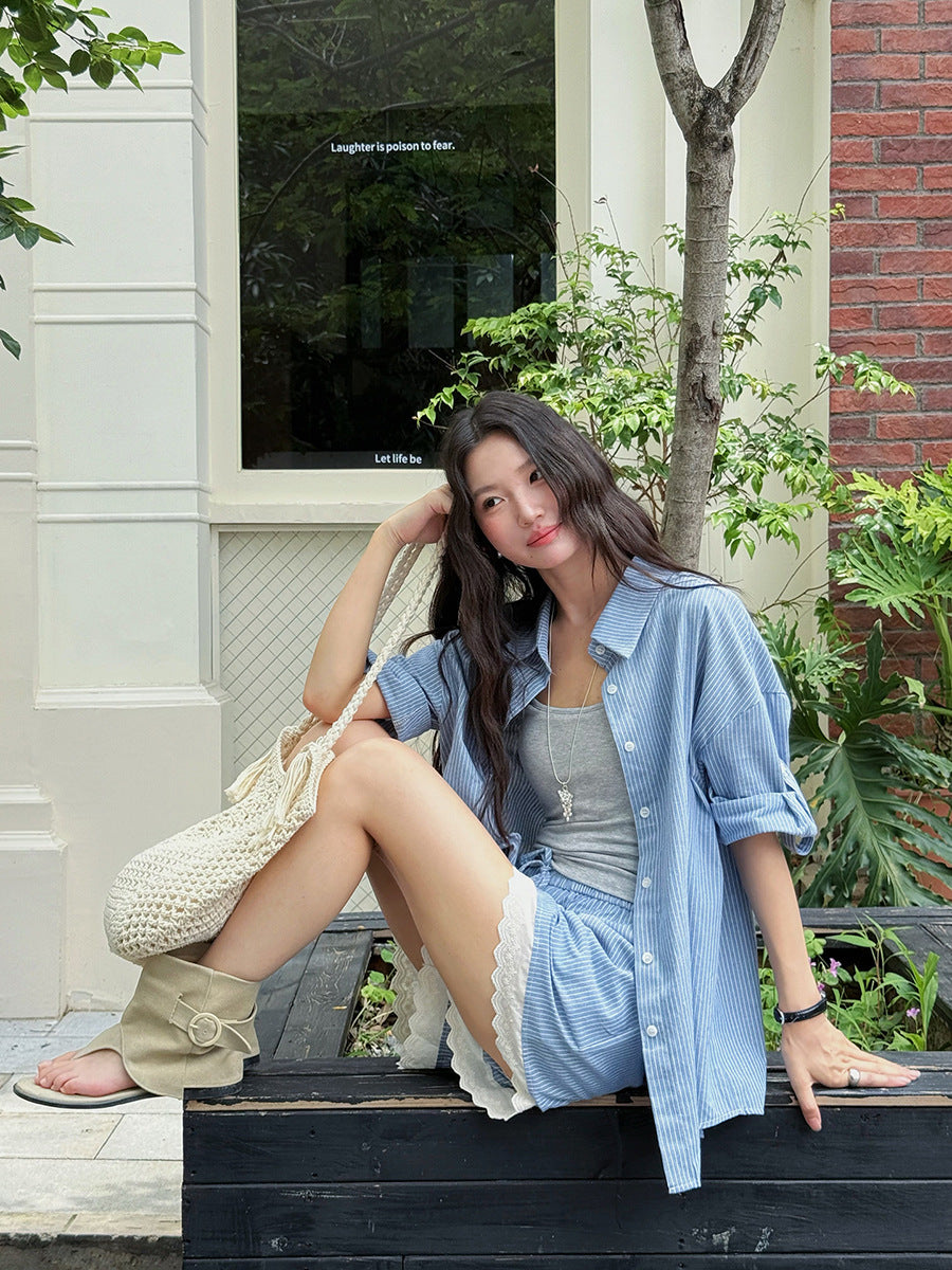 Opdag det perfekte sæt til dine sommerudflugter: det afslappede kortærmede skjorte og shorts sæt fra Stilla. Dette stilfulde sæt kombinerer afslappet komfort med mode detaljer, ideelt til varme dage udendørs.