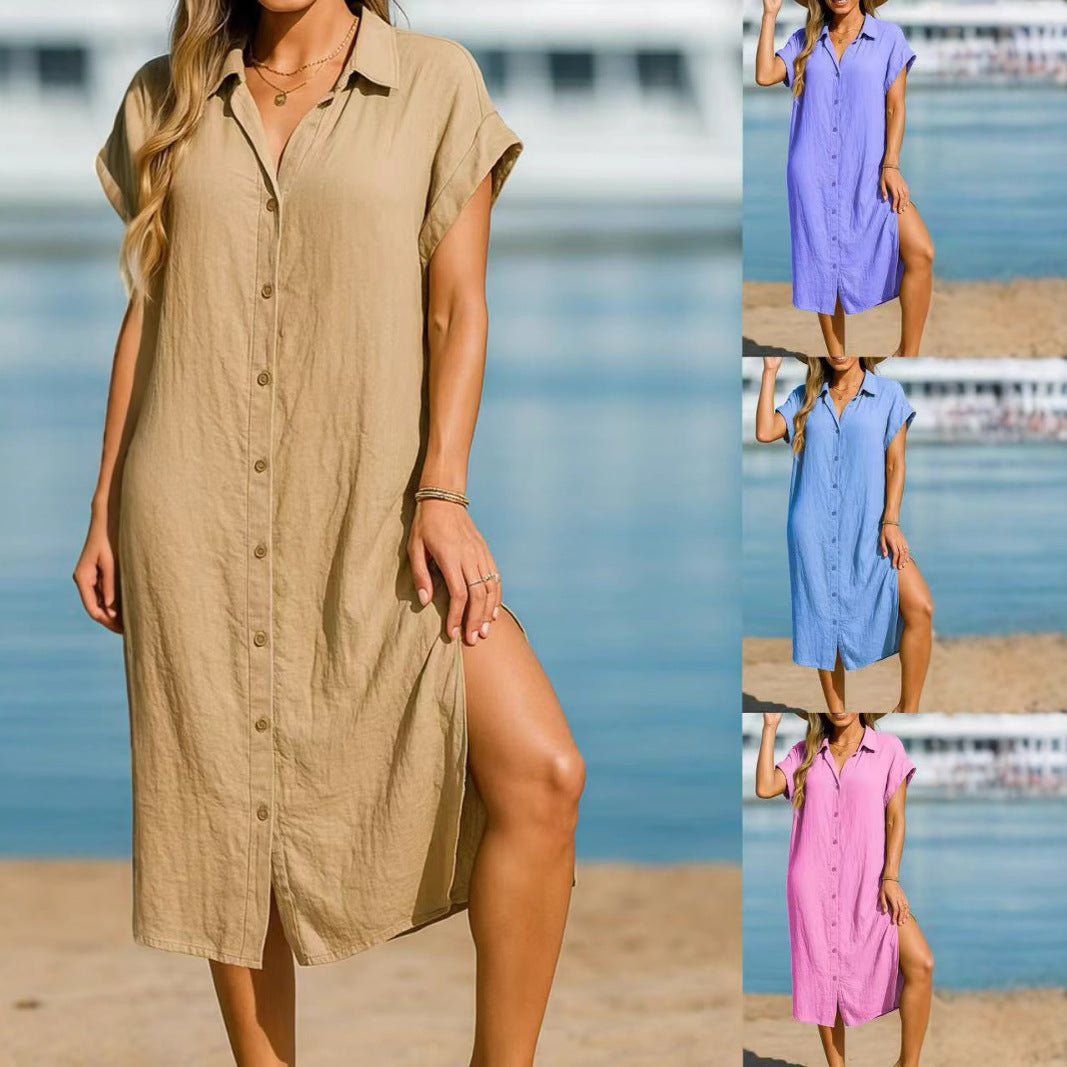 Opdag det perfekte outfit til varme dage med vores dame afslappede kortærmede skjortekjole. Denne stilfulde kjole er lavet af let, åndbart stof, der øger komforten og er ideel til sommerlige eventyr.