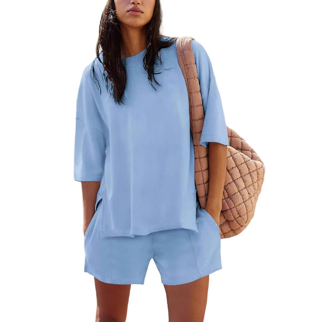 Opdag det perfekte afslappede outfit til sommeren med vores dames afslappede kortærmede sæt fra Stilla. Dette sæt forener komfort og stilfuldt design og er ideelt til afslappede dage eller spontane udflugter.
