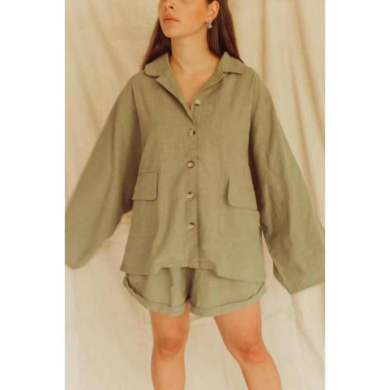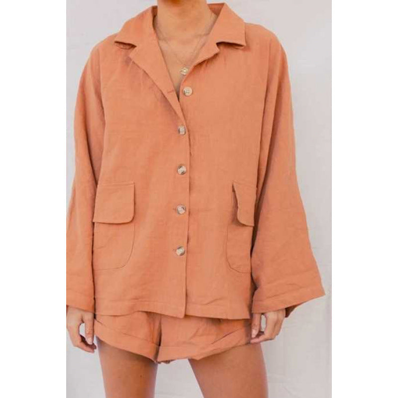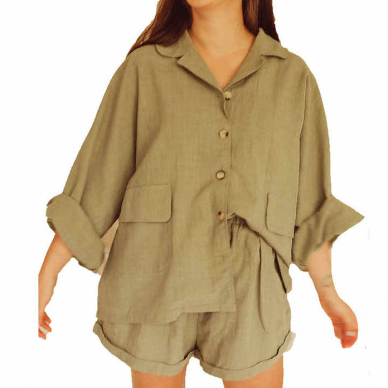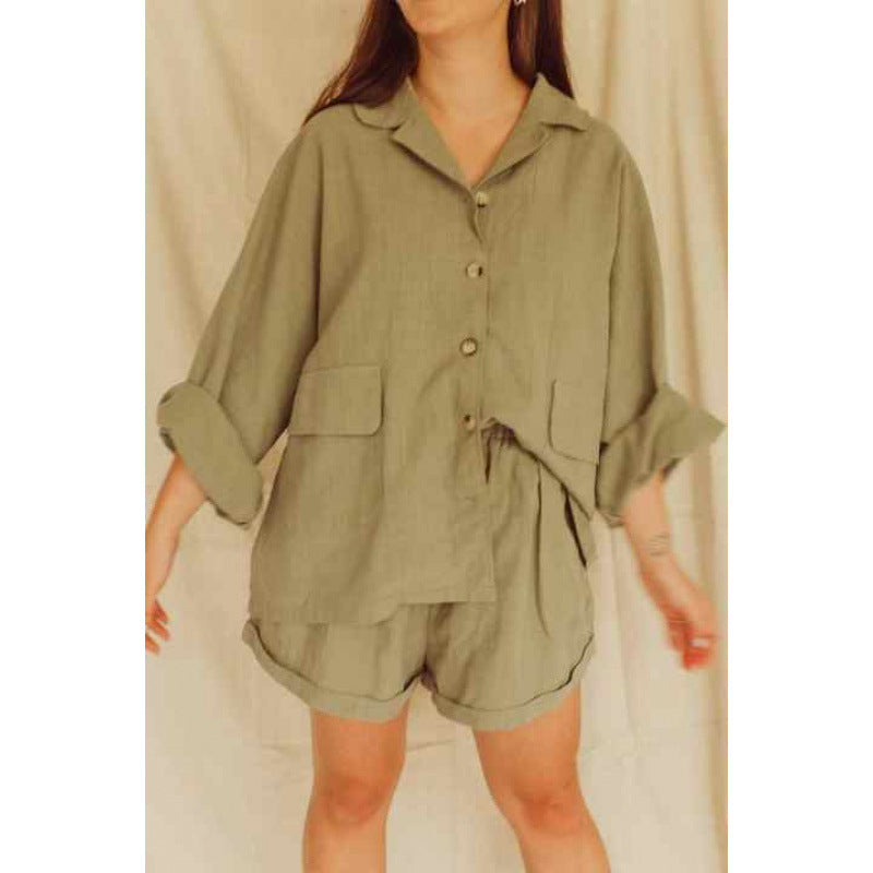 Entdecken Sie unser stilvolles und komfortables Damen lässiges Kurzarm-Set, das ideal für warme Tage ist. Dieses Set besteht aus einer gemütlichen Bluse mit einem klassischen Kragen und modischen Knopfdetails sowie einer passenden Short für ultimative Bequemlichkeit.