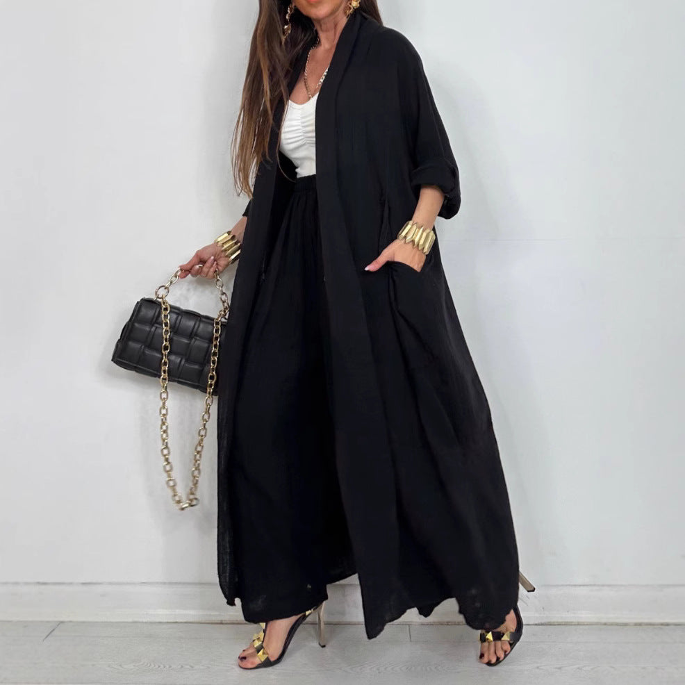 Tilføj denne alsidige lang frakke til din garderobe og nyd den perfekte blanding af stil og komfort!