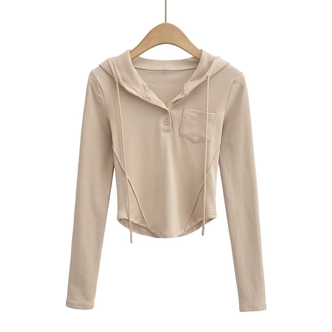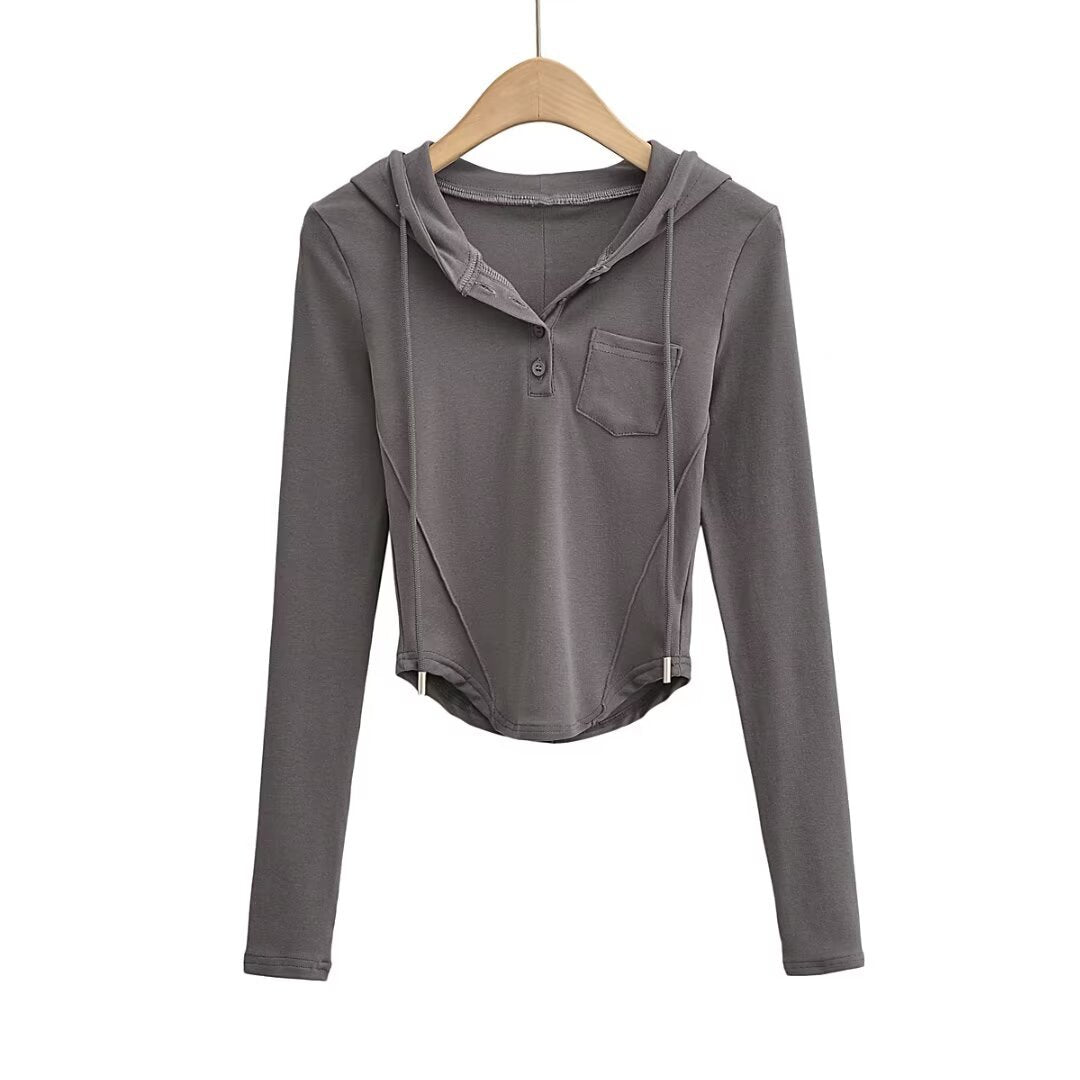 Oplev vores dames afslappede langærmede hoodie, den perfekte følgesvend til fritidsaktiviteter og afslappede dage. Med sit moderne design og praktiske funktioner er denne overdel både stilfuld og funktionel.