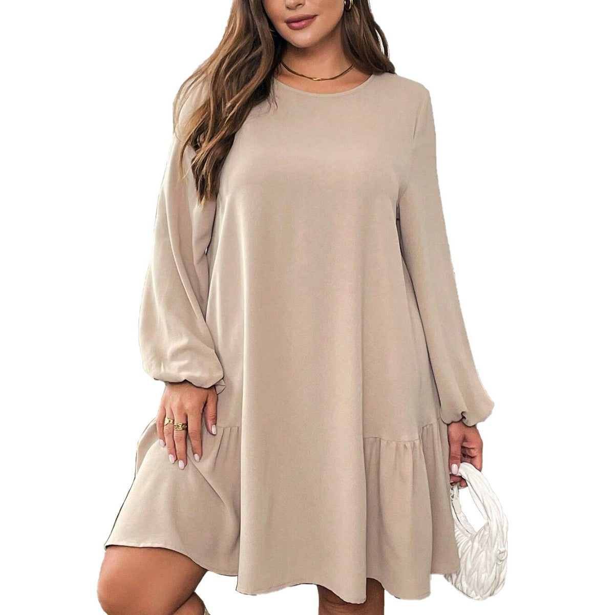 Oplev vores damers afslappede langærmede kjole, der imponerer med en smuk flæse kant og en elegant rund halsudskæring. Denne kjole er det perfekte valg til enhver lejlighed, hvad enten det er til en afslappet dag på kontoret eller en stilfuld aften med venner.
