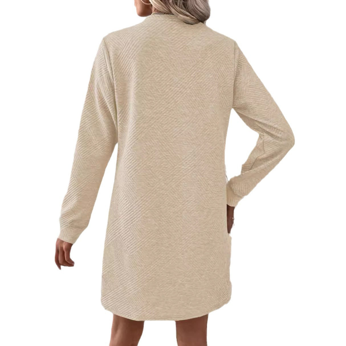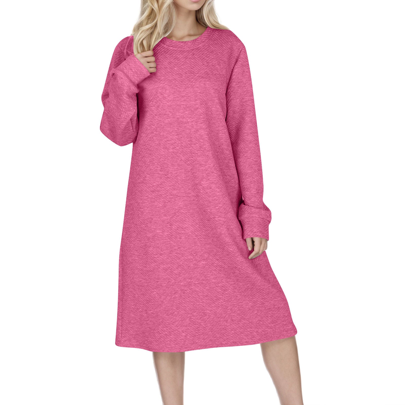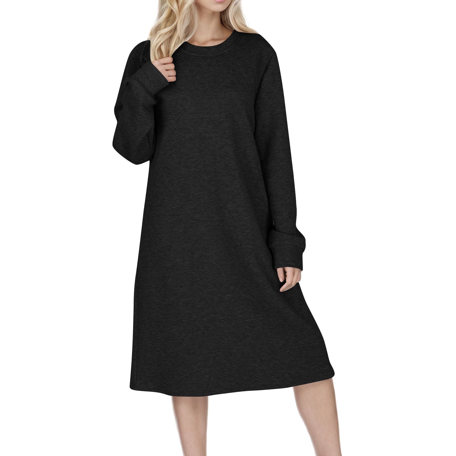 Opdag vores trendy dame langærmet kjole, der med sit moderne strukturerede design og behagelige snit beriger enhver garderobe. Denne kjole er ideel til både hverdag og særlige lejligheder.