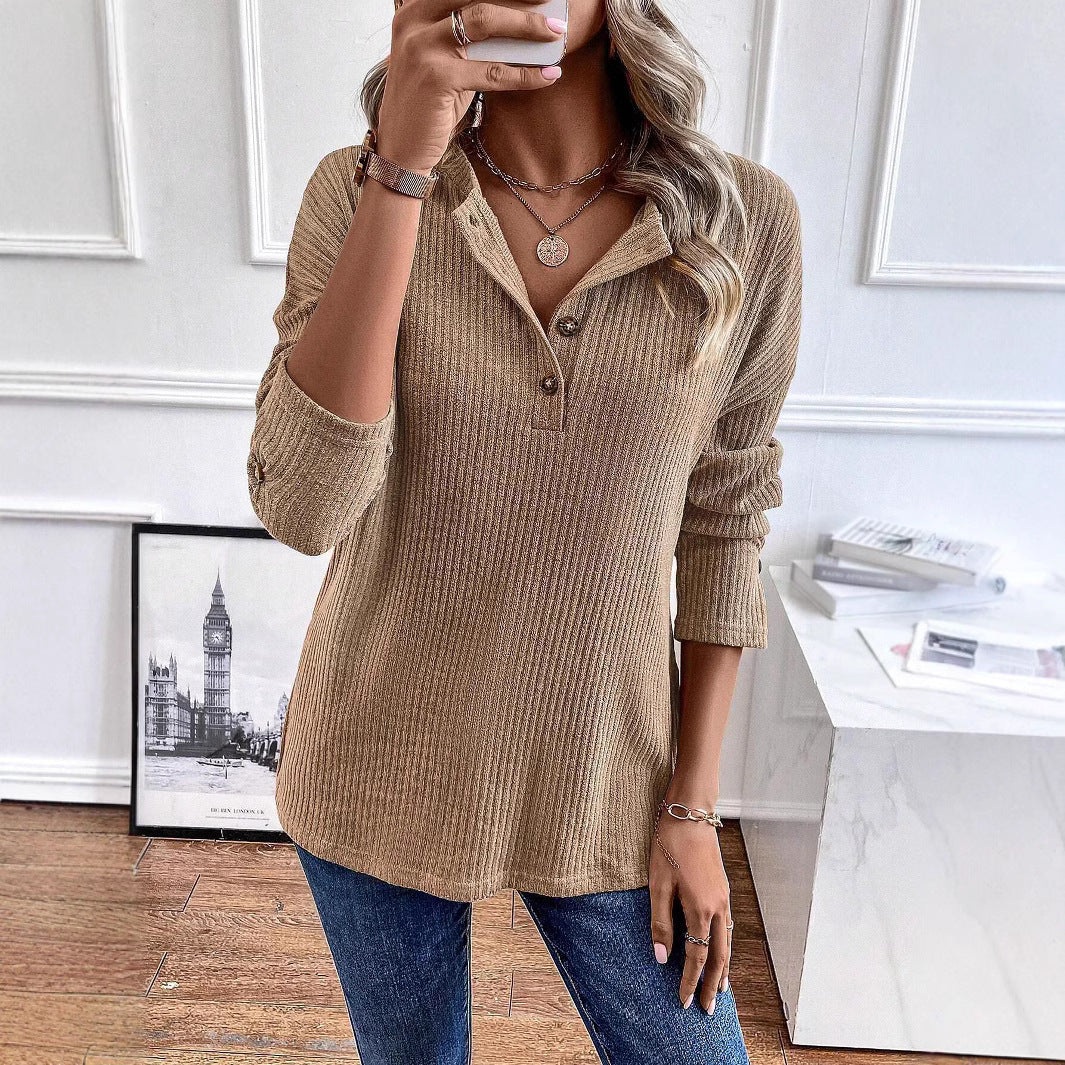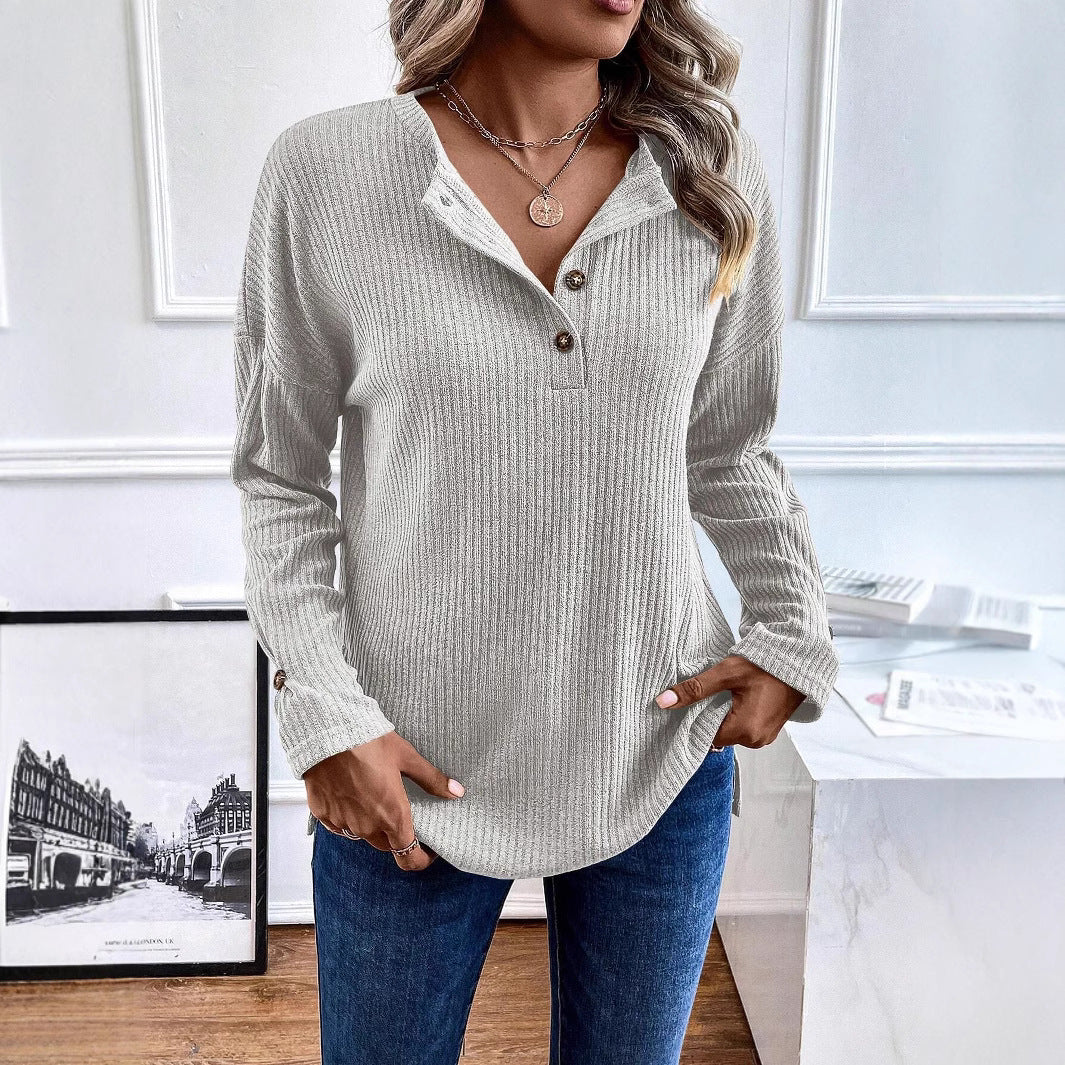 Oplev vores damers afslappede langærmede t-shirt med dekorative knapdetaljer og moderne ribdesign fra Stilla. Dette stilfulde top er den perfekte kombination af elegance og komfort. Lavet af høj kvalitet, åndbar bomuld giver det dig en behagelig bæreoplevelse hele dagen.