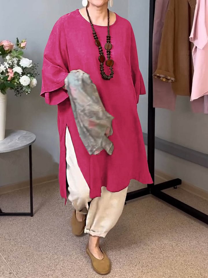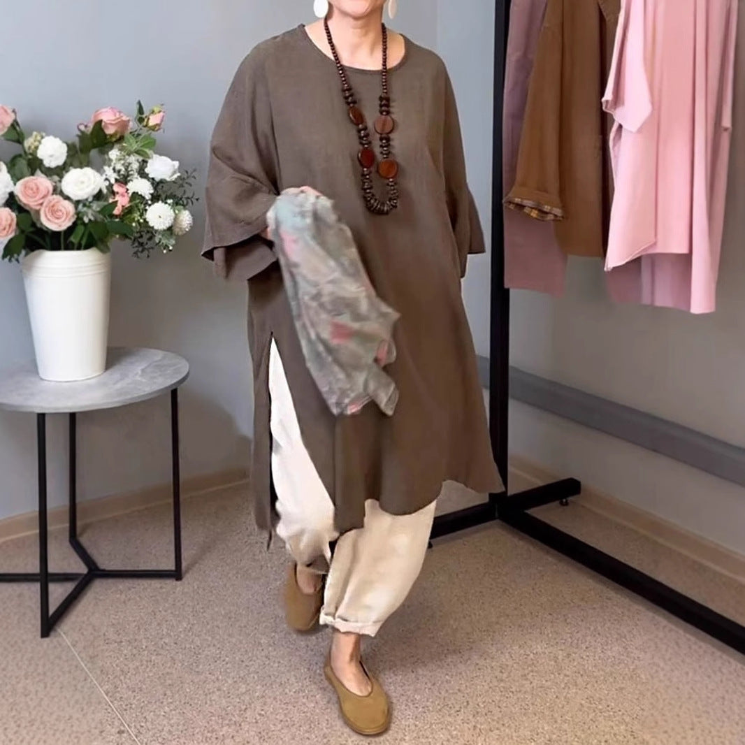 Opdag den perfekte blanding af komfort og stil med vores dametunika med lange ærmer. Denne mode-tunika imponerer med sit unikke snit og de gennemtænkte detaljer, der gør den til et ægte blikfang.