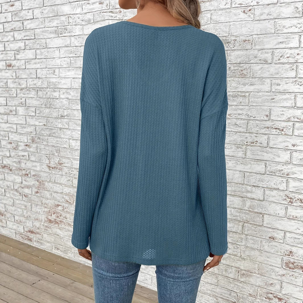 Opdag vores dames afslappede langærmede top med V-hals og vaffelmønster fra Stilla, som er perfekt til afslappede dage. Denne top forener stil og komfort, ideel til enhver lejlighed.