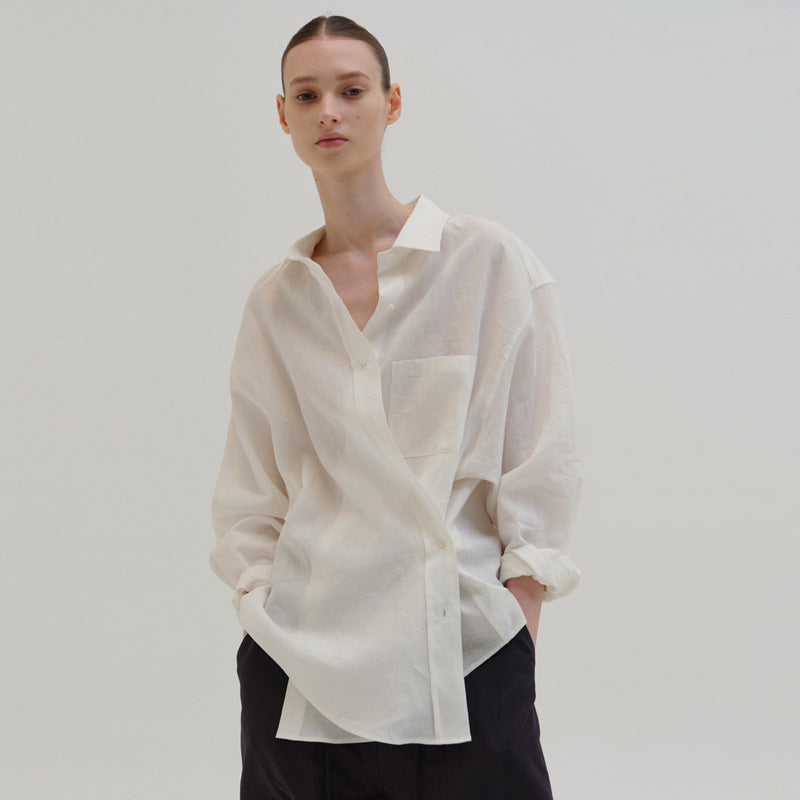 Tilføj et friskt og stilfuldt præg til din garderobe med dame linnedblusen med lommer fra Stilla!