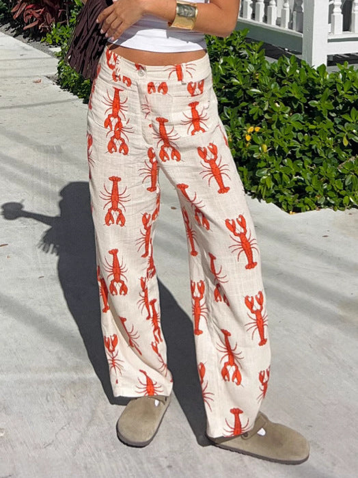 Oplev den ultimative kombination af komfort og stil med vores afslappede linnedbukser, der er accentueret med et unikt maritimt hummermotiv. Disse bukser er perfekte til varme dage på stranden eller afslappede eftermiddage udendørs.