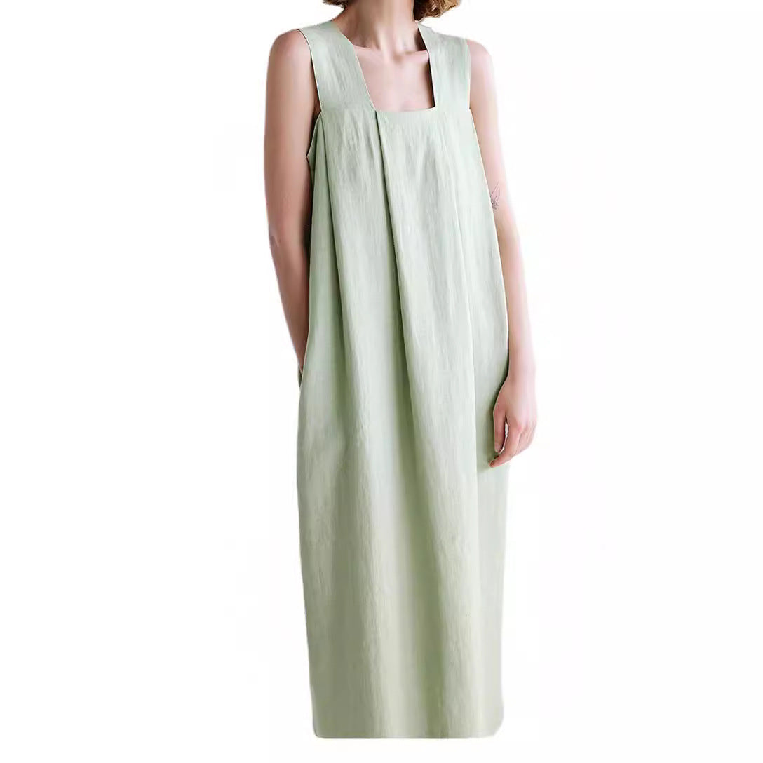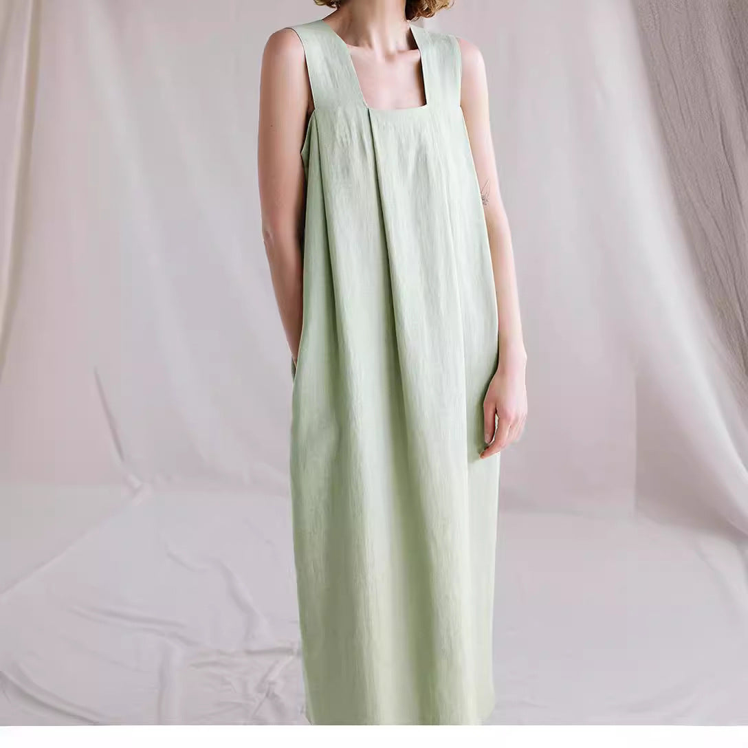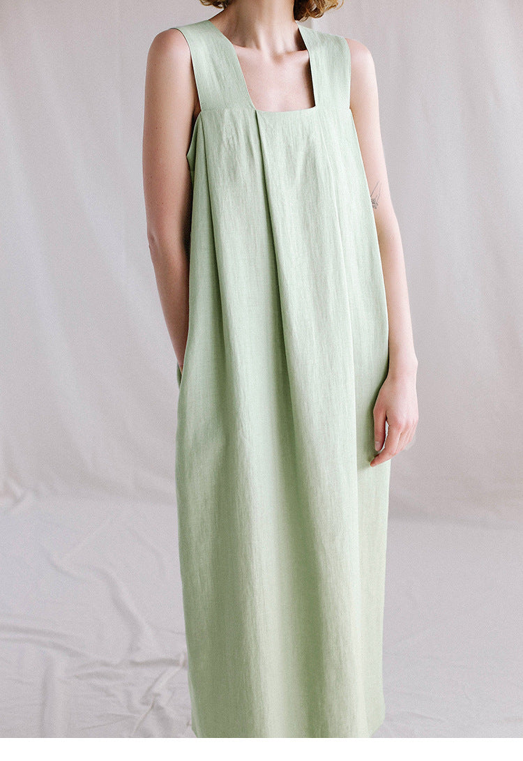 Oplev vores stilfulde og komfortable dameløse linnedkjole med firkantet udskæring og folder fra Stilla. Denne kjole kombinerer elegance med afslappet komfort og er den perfekte ledsager til varme sommerdage.