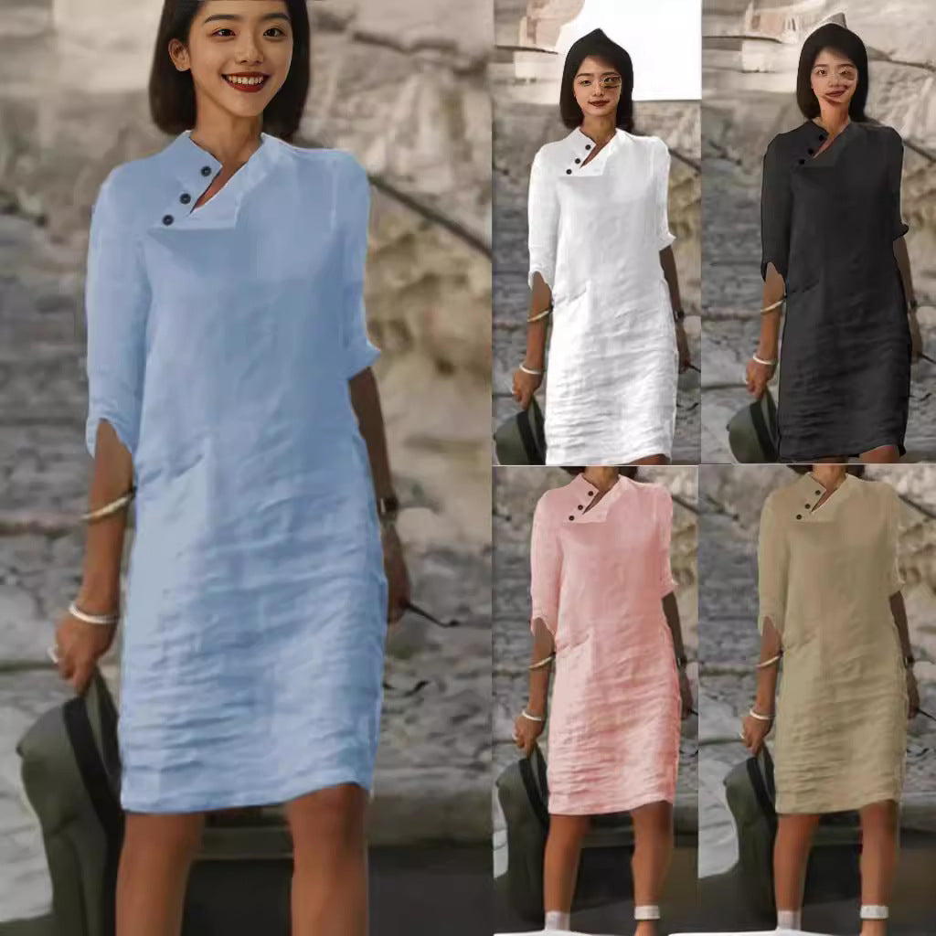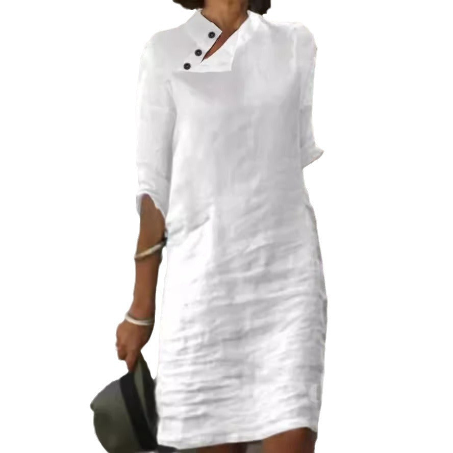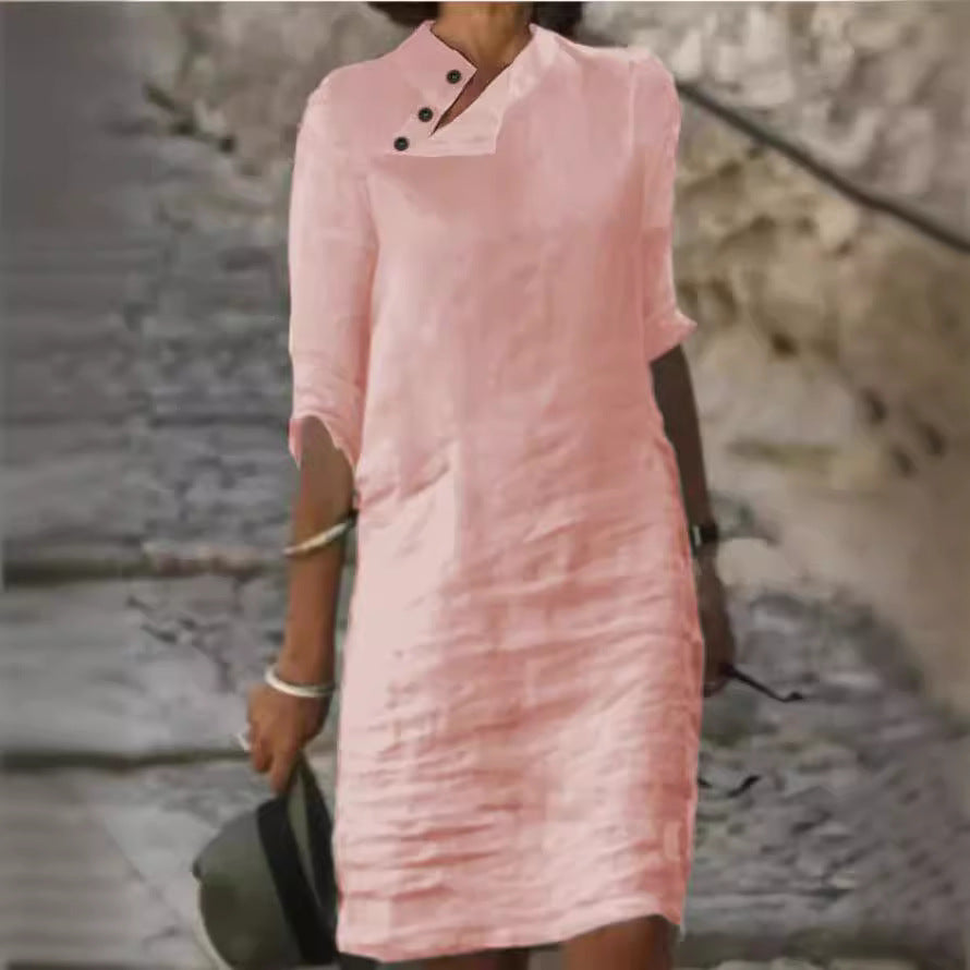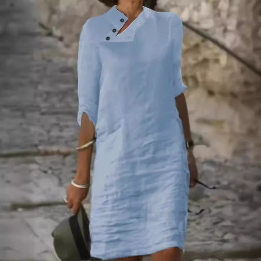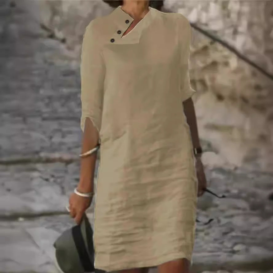 Oplev vores dames afslappede linnedkjole med moderne knapdetaljer fra Stilla – det perfekte valg til varme sommerdage. Denne kjole forener stil og komfort på overbevisende vis.