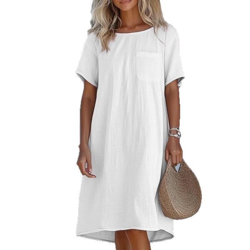 Opdag den perfekte kjole til årets varme dage: vores dames afslappede linnedkjole med praktisk brystlomme og løst snit fra Stilla. Ideel til afslappede udflugter eller rolige dage på stranden, forener denne kjole stil med komfort.